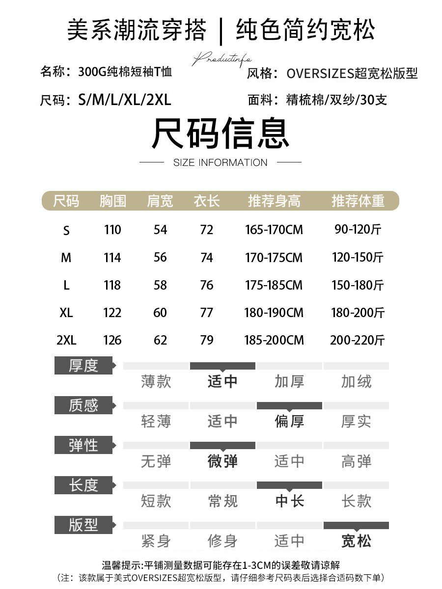 빗질 된 면 300g 무거운 면 반소매 남성용 크루 넥 티셔츠 여성용 레트로 루즈한 베이스 셔츠 미국 패션 브랜드 탑스토어 가기