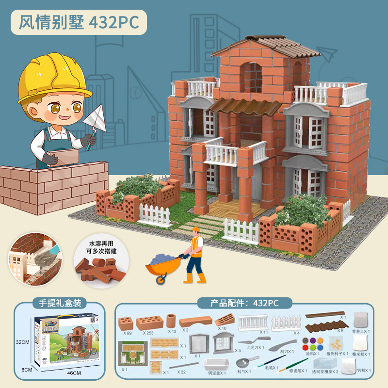 미니 작은 bricklayer diy 아이 건축 집 장난감 집 건축 수제 모형 벽돌 벽 장난감