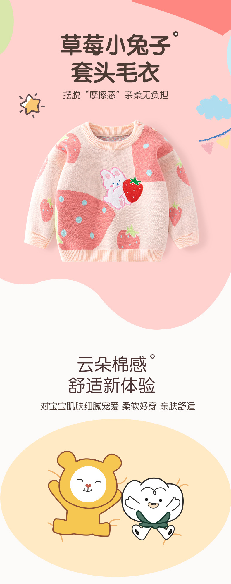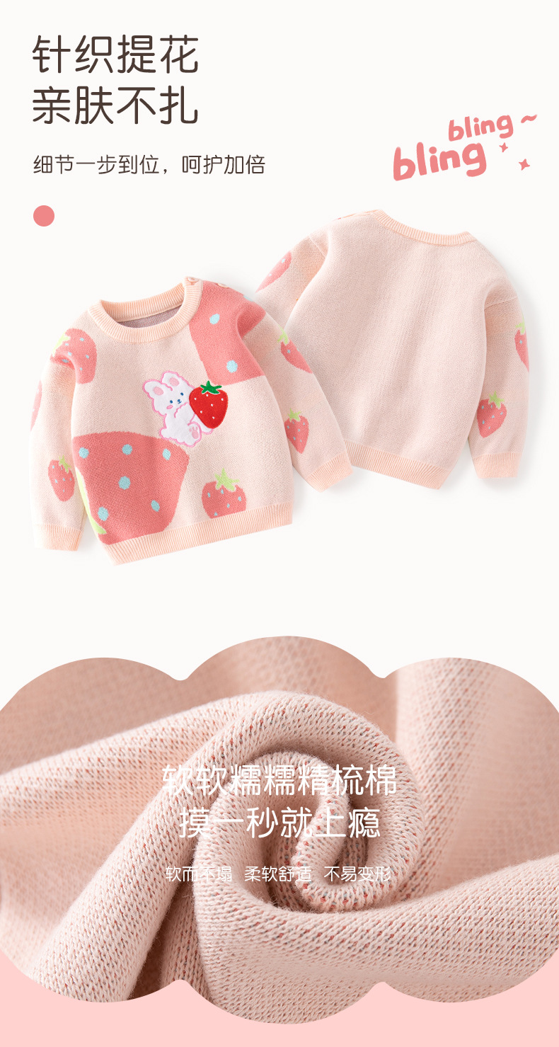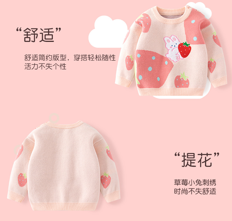 딸기 토끼 니트 소녀 스웨터 순수 코튼 클래스 A 베이비 니트 스웨터 가을, 겨울 소녀 기본 스웨터스토어 가기