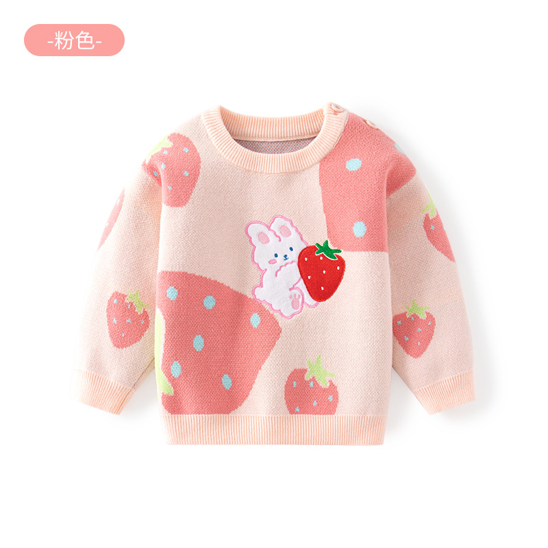 딸기 토끼 니트 소녀 스웨터 순수 코튼 클래스 A 베이비 니트 스웨터 가을, 겨울 소녀 기본 스웨터