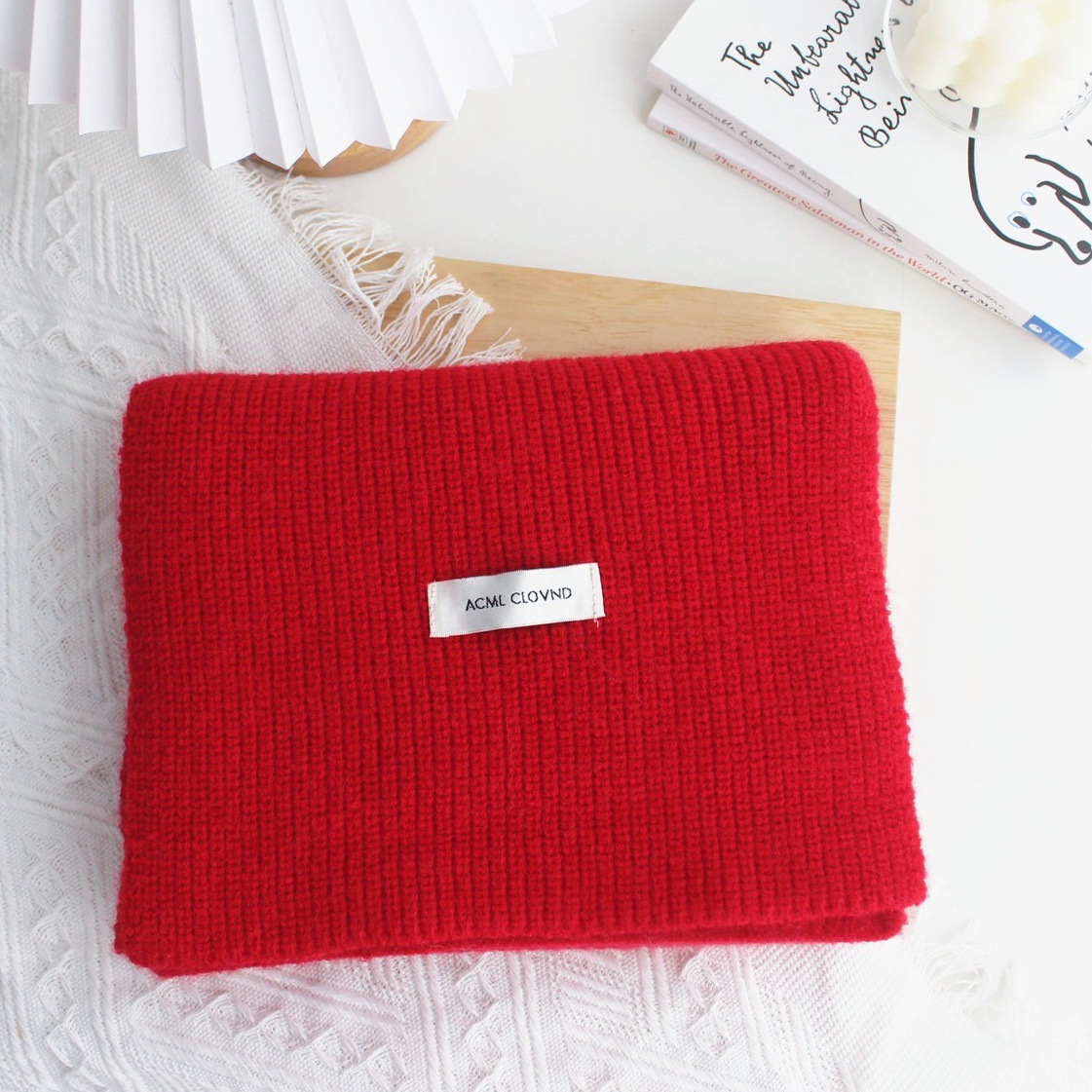 가을과 겨울 스카프 새로운 한국 스타일 Yuanbao 니트 스카프 남성과 여성 커플 단색 피타야 컬러 울 스카프