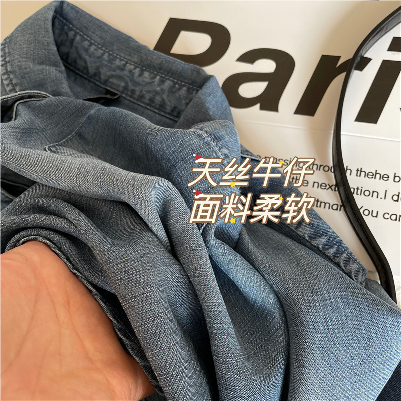 Tencel 데님 일 단일 공장 주문 옷깃 긴 소매 슬림 셔츠 2023 봄 여성 부티크 셔츠