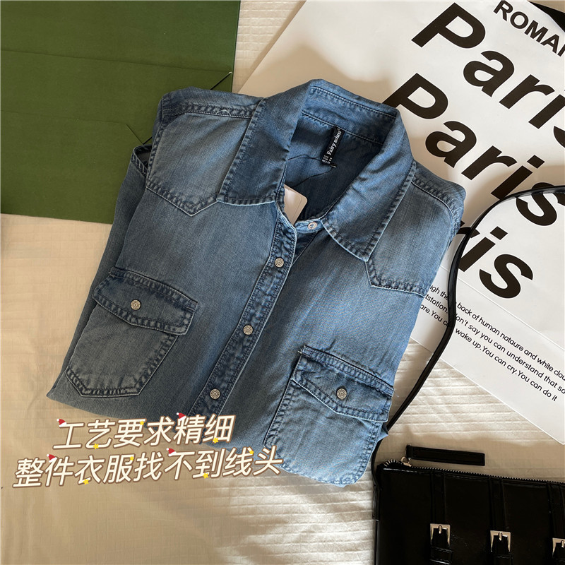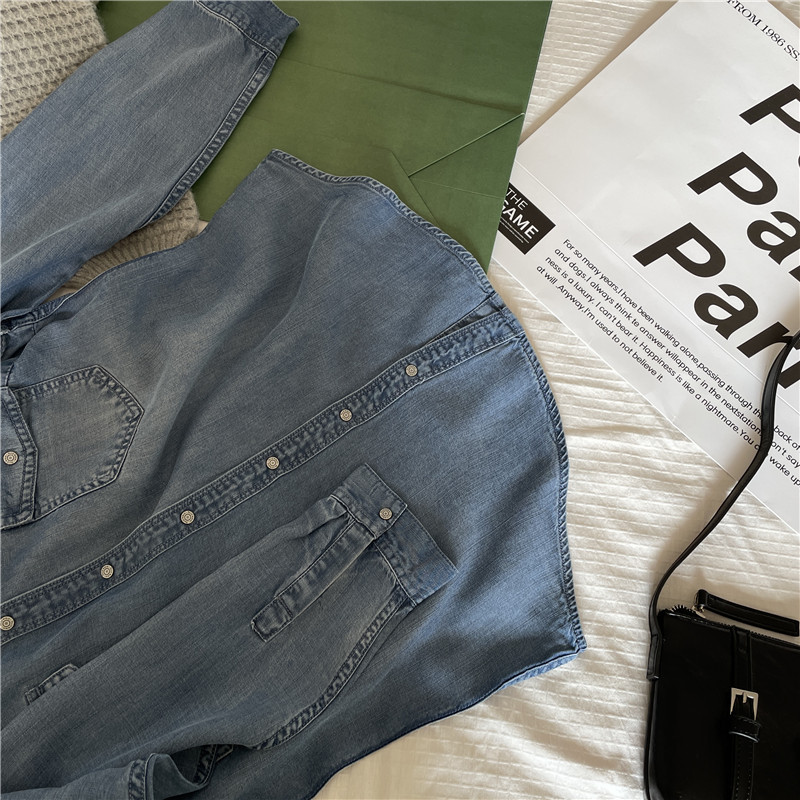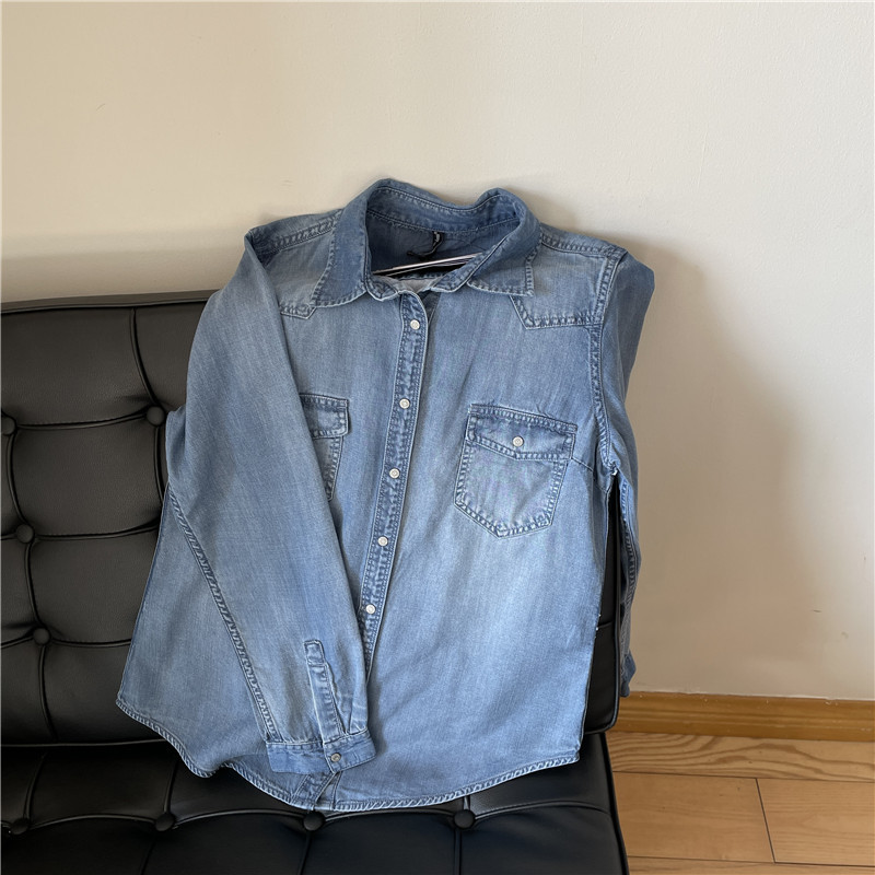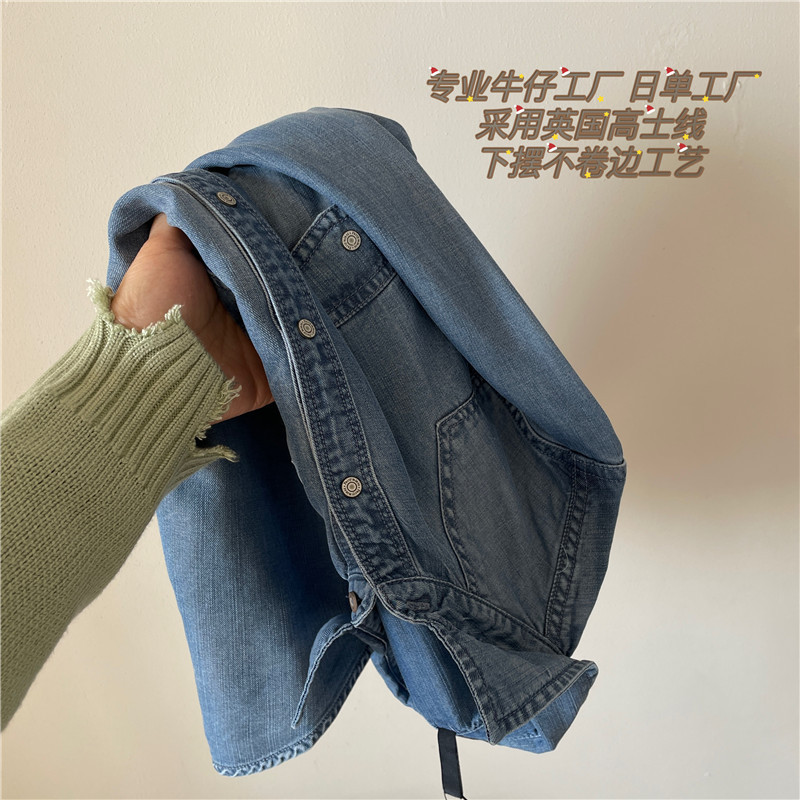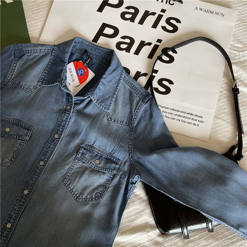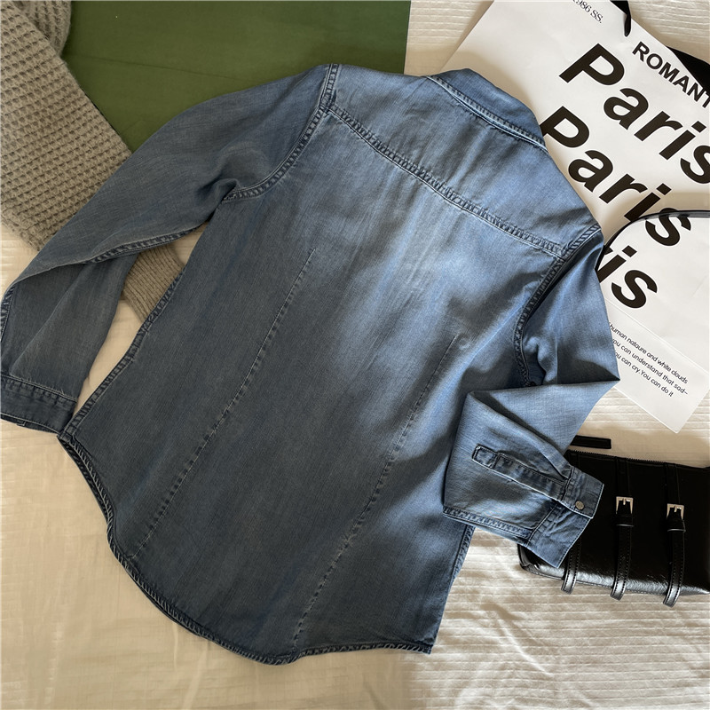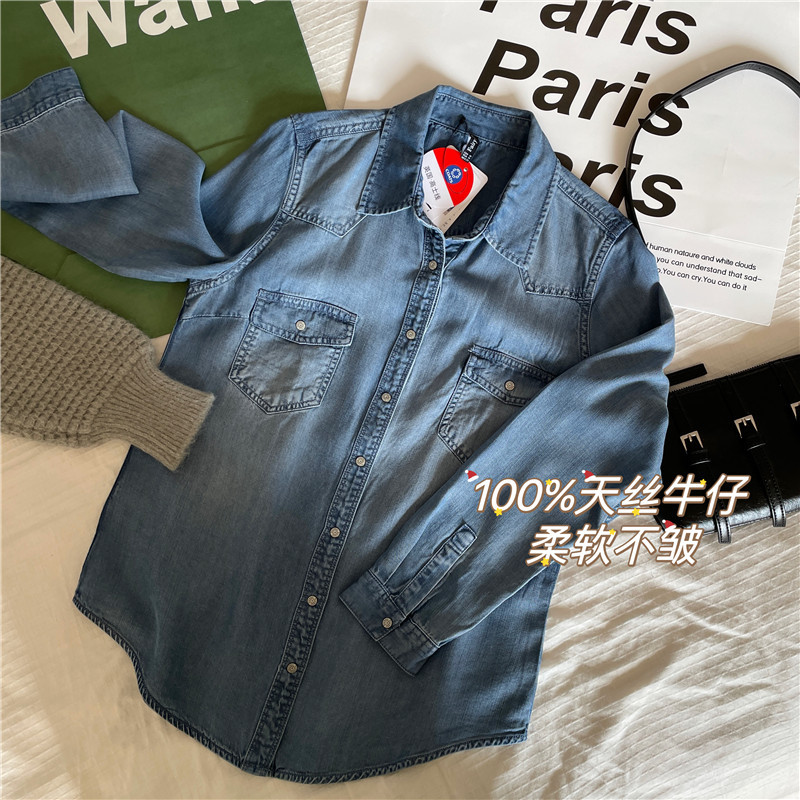 Tencel 데님 일 단일 공장 주문 옷깃 긴 소매 슬림 셔츠 2023 봄 여성 부티크 셔츠스토어 가기