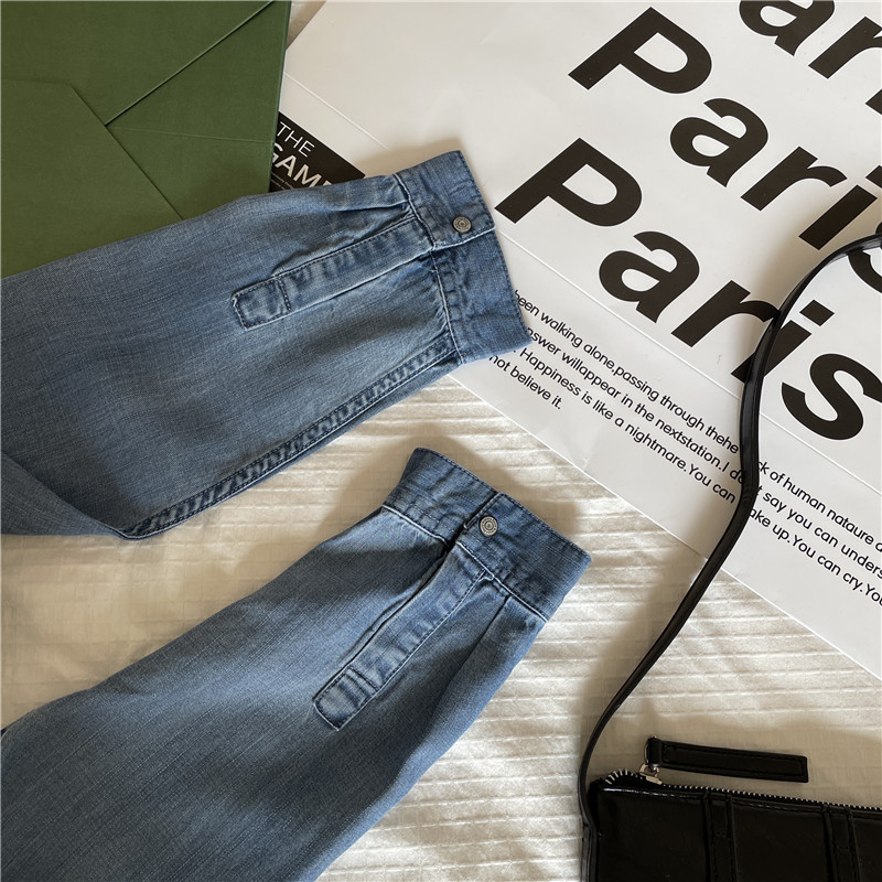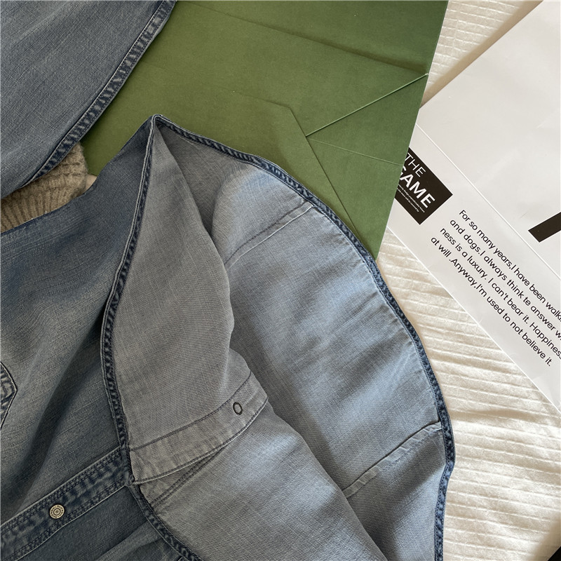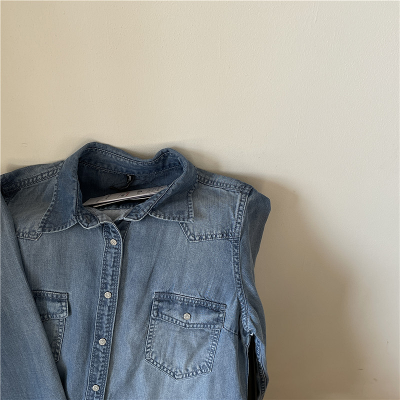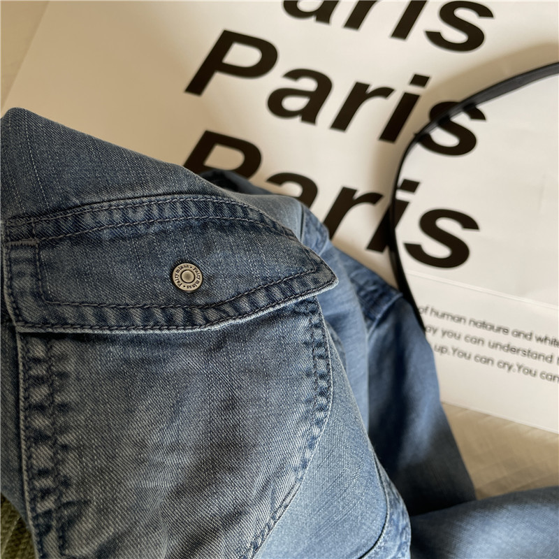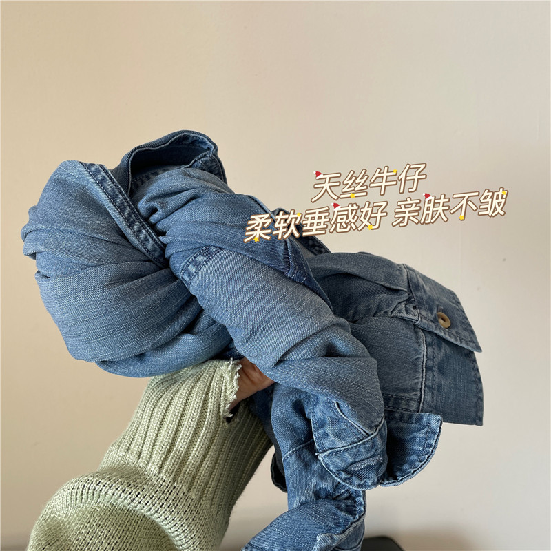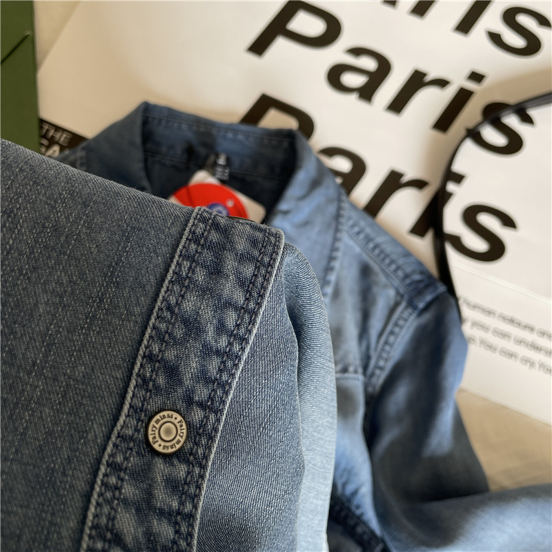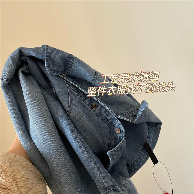 Tencel 데님 일 단일 공장 주문 옷깃 긴 소매 슬림 셔츠 2023 봄 여성 부티크 셔츠스토어 가기