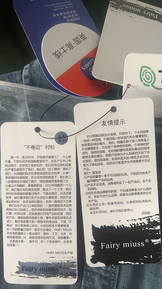 收到衣服参考吊牌详情介绍,衬衫面料介绍,洗涤方法介绍,谢谢