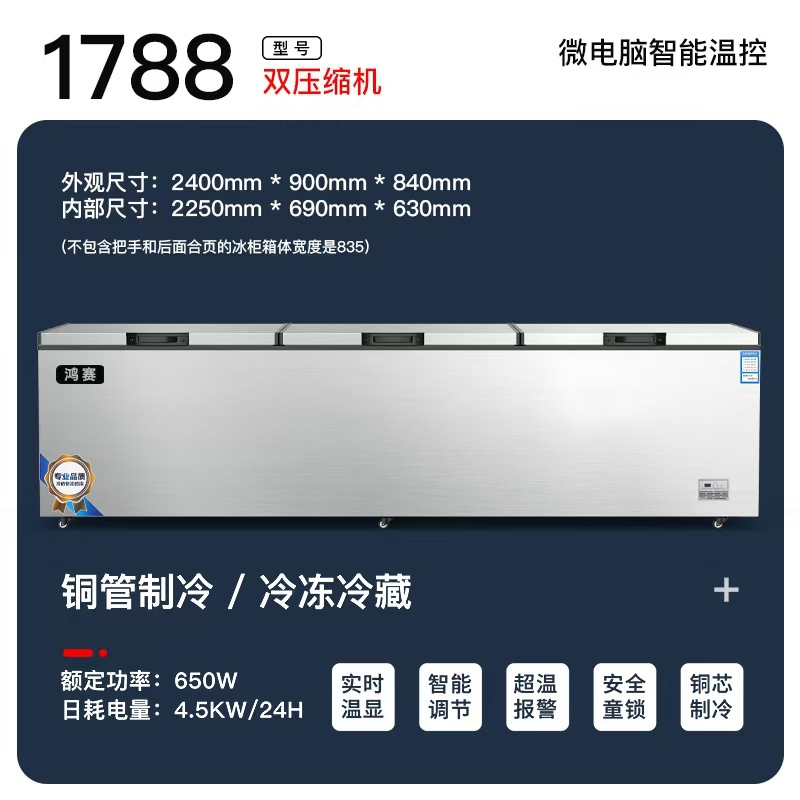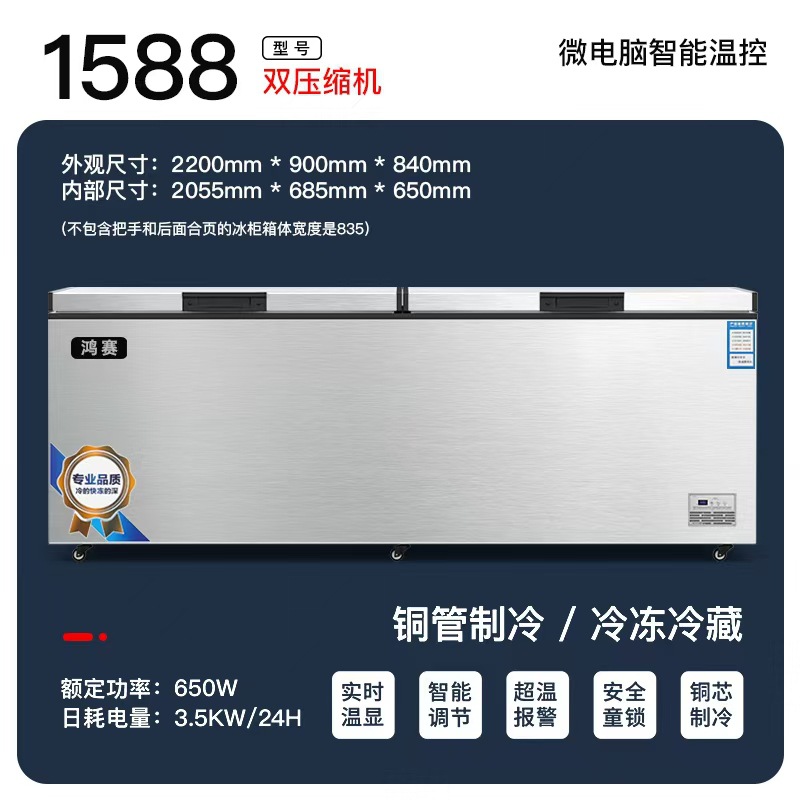대용량 상업용 수평 냉동고 냉장고 냉동 냉동 냉동 신선한 두 배 온도 냉동고 빠른 동결 에너지 절약 냉동고