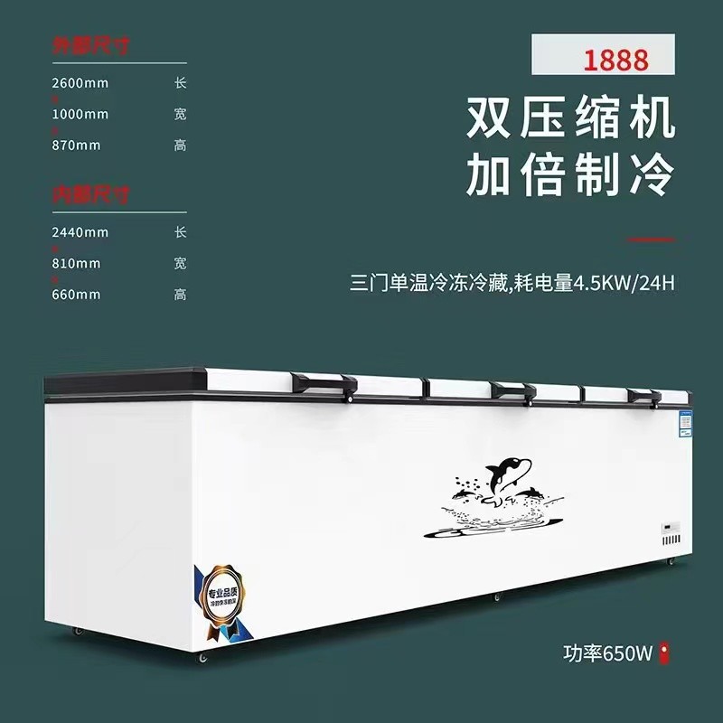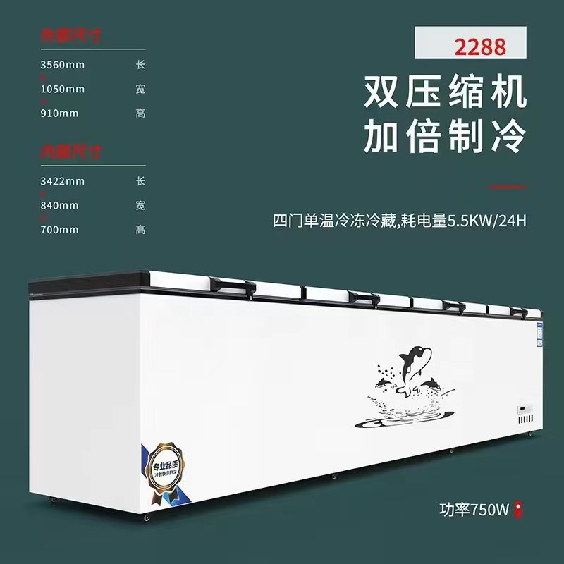 대용량 상업용 수평 냉동고 냉장고 냉동 냉동 냉동 신선한 두 배 온도 냉동고 빠른 동결 에너지 절약 냉동고스토어 가기