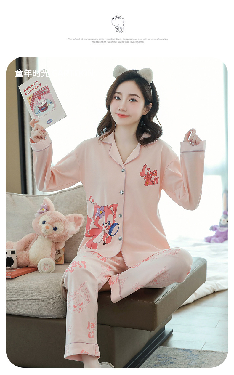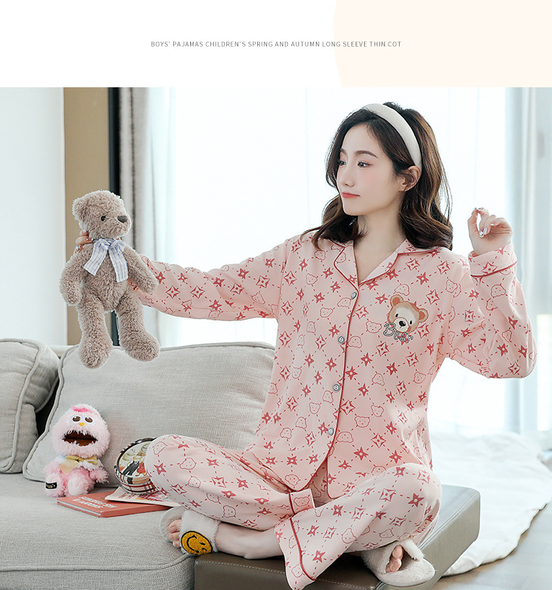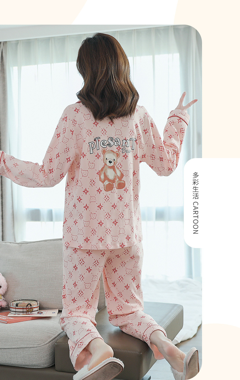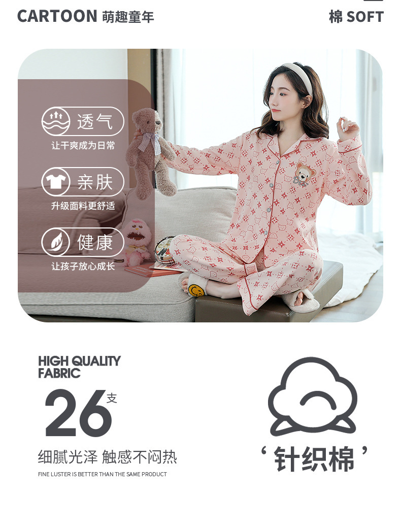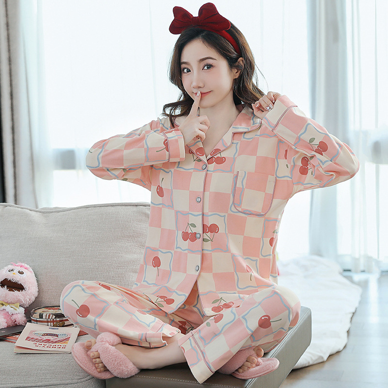 2023 새로운 면 잠옷 여자의 봄과 가을 긴 소매 달콤한 귀여운 얇은 겉옷 가정 옷 세트스토어 가기