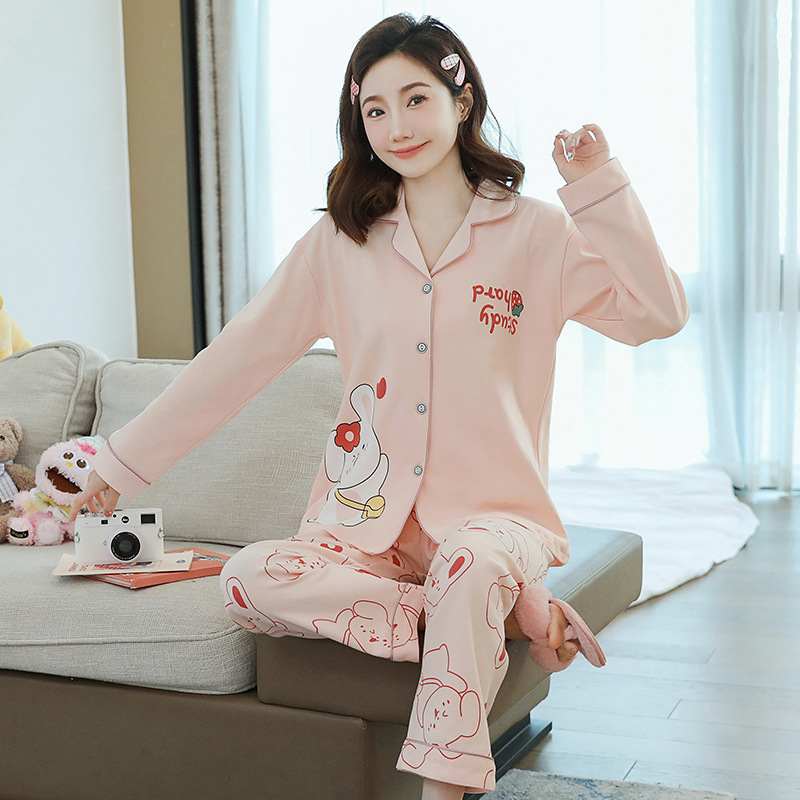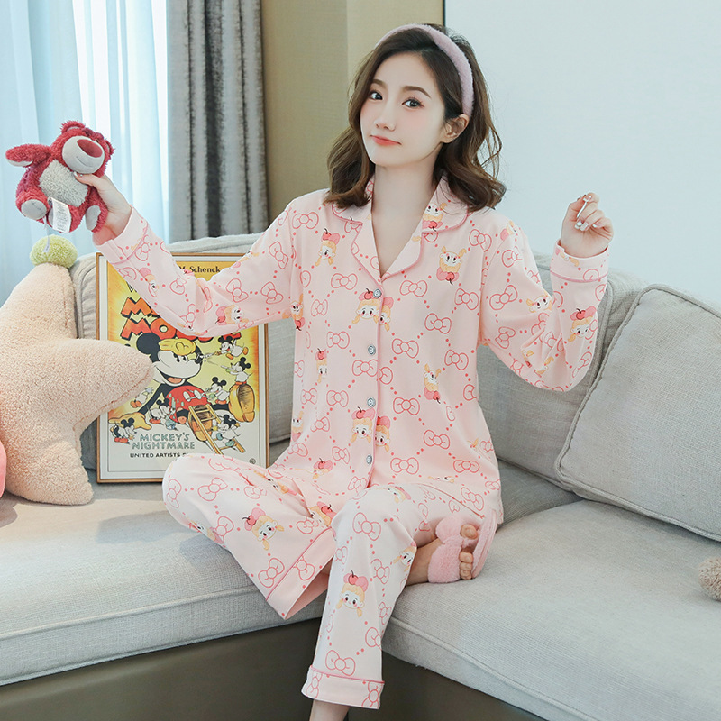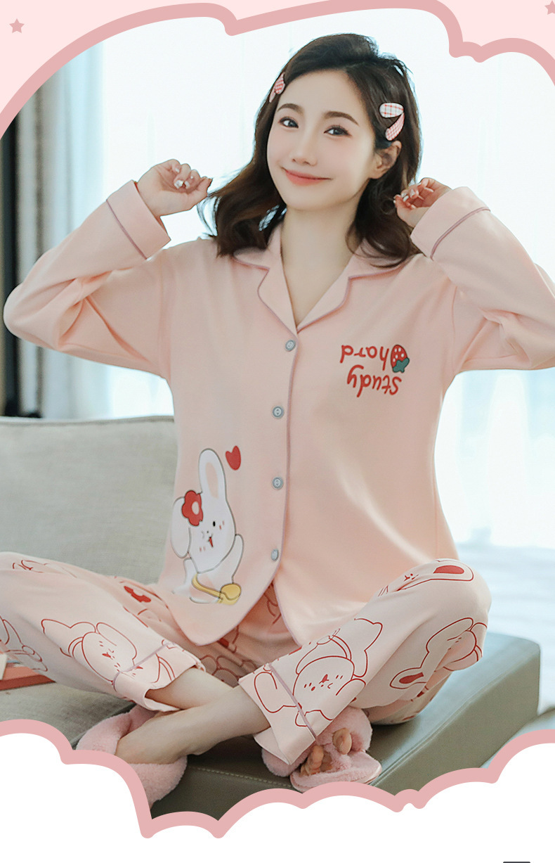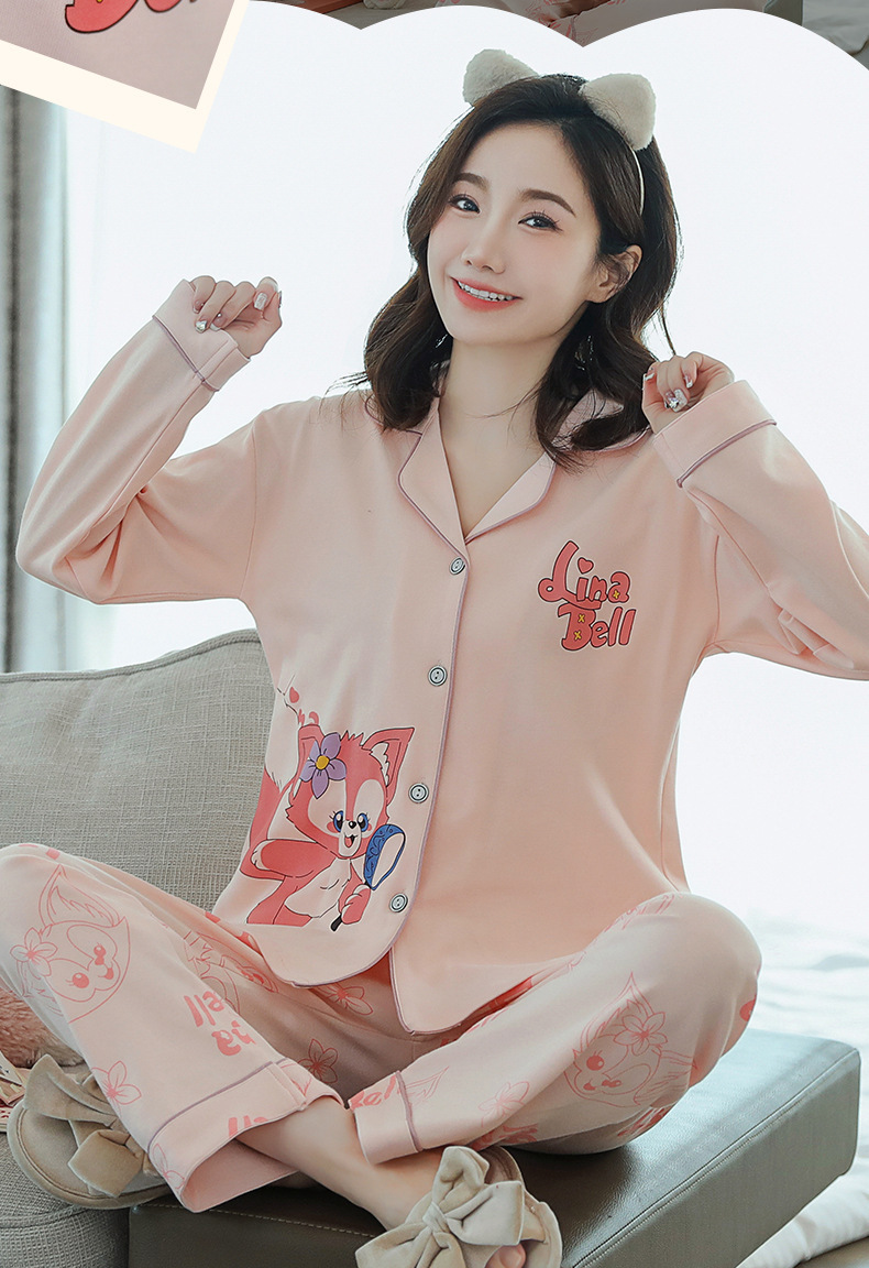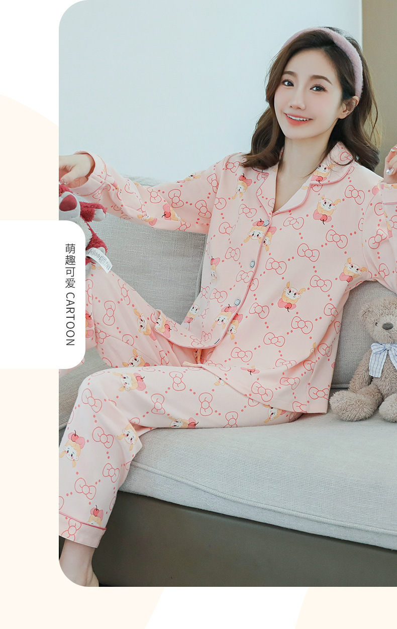2023 새로운 면 잠옷 여자의 봄과 가을 긴 소매 달콤한 귀여운 얇은 겉옷 가정 옷 세트스토어 가기