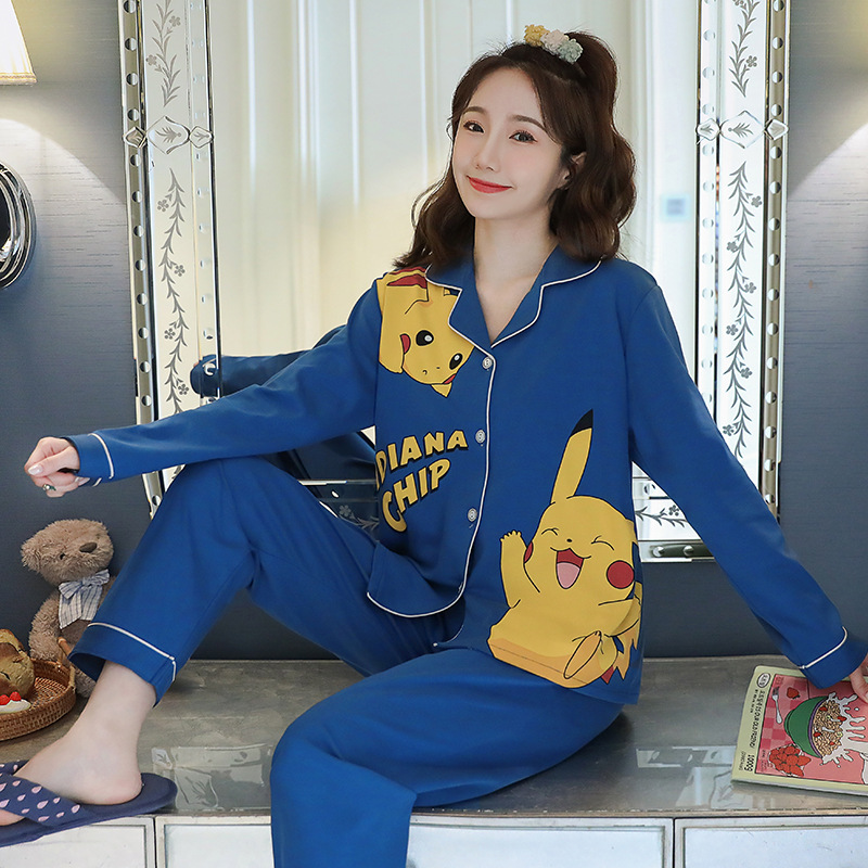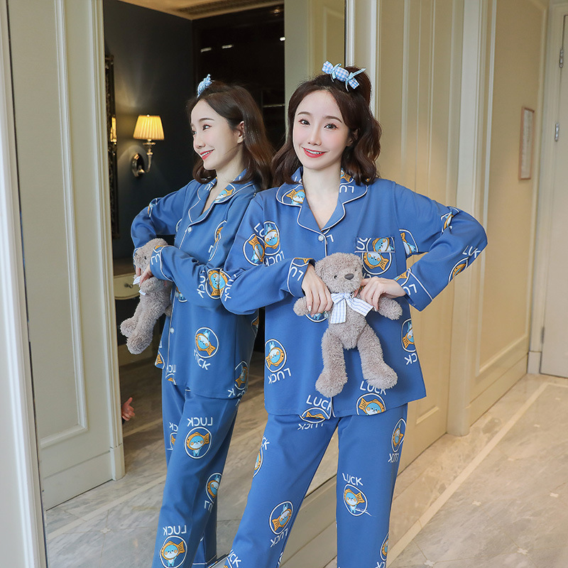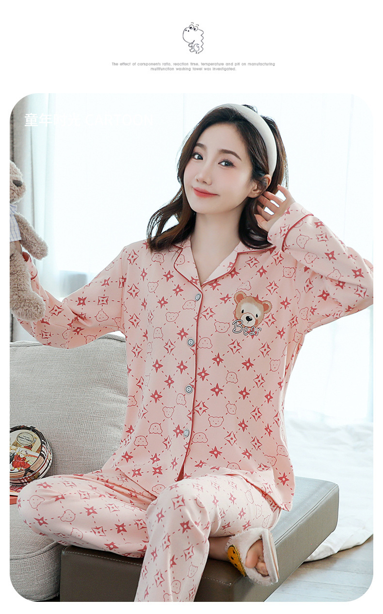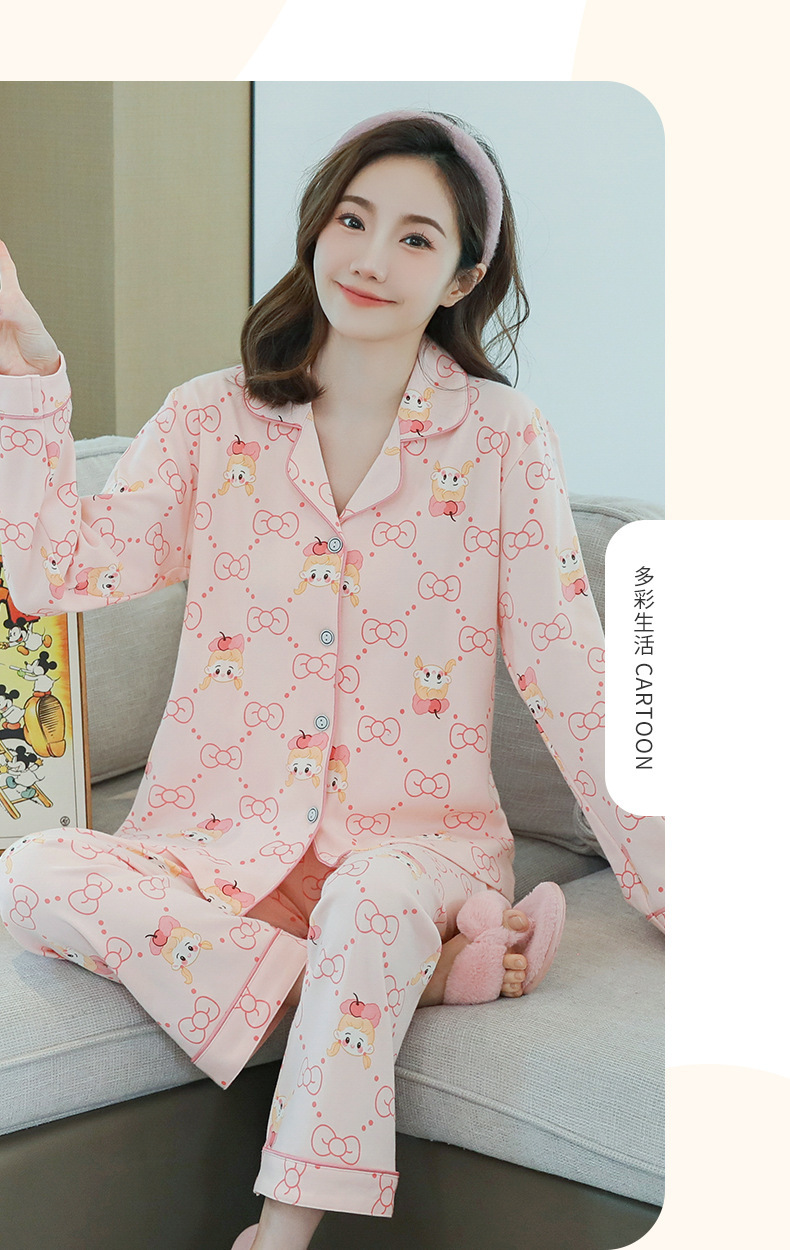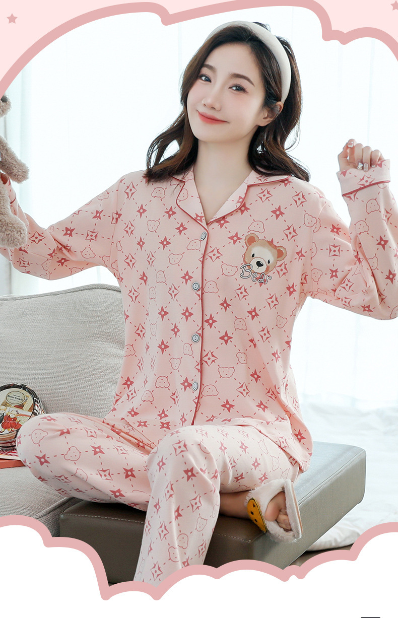 2023 새로운 면 잠옷 여자의 봄과 가을 긴 소매 달콤한 귀여운 얇은 겉옷 가정 옷 세트스토어 가기