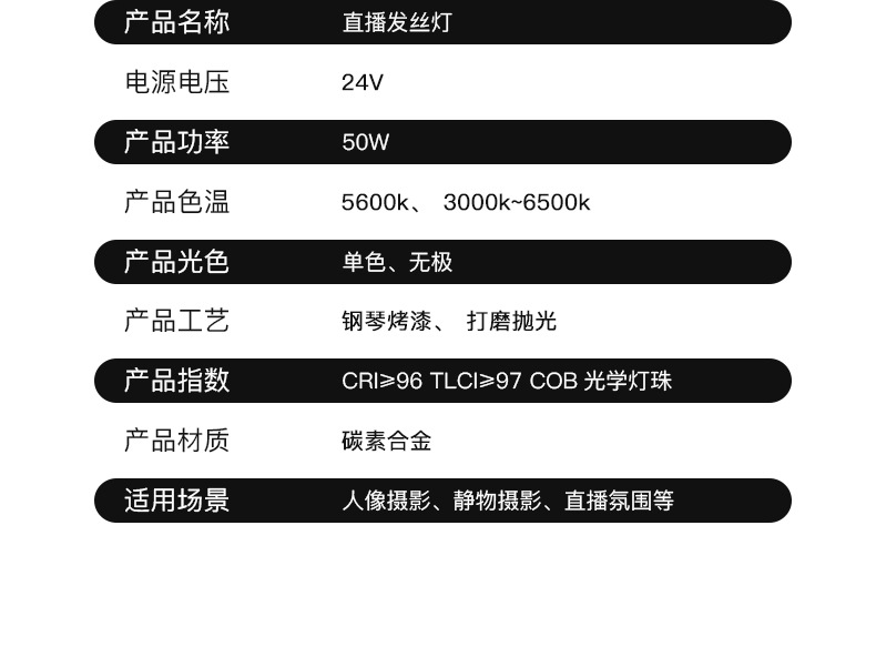 처리 사용자 정의 머리 램프 거실 채우기 빛 LED 줌 스포트라이트 앵커 전용 태양 램프 개요