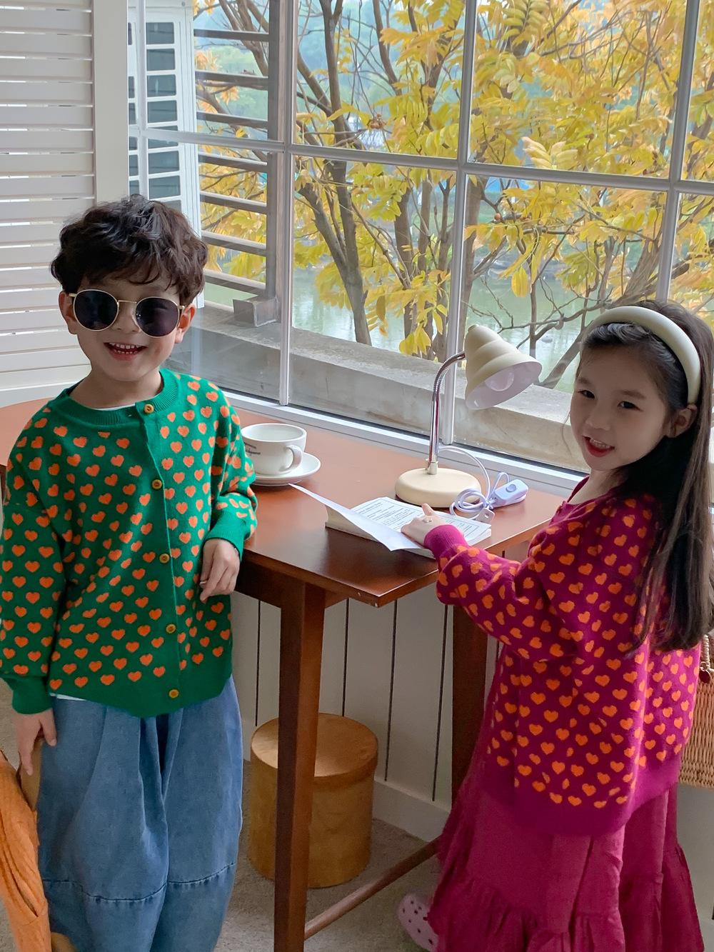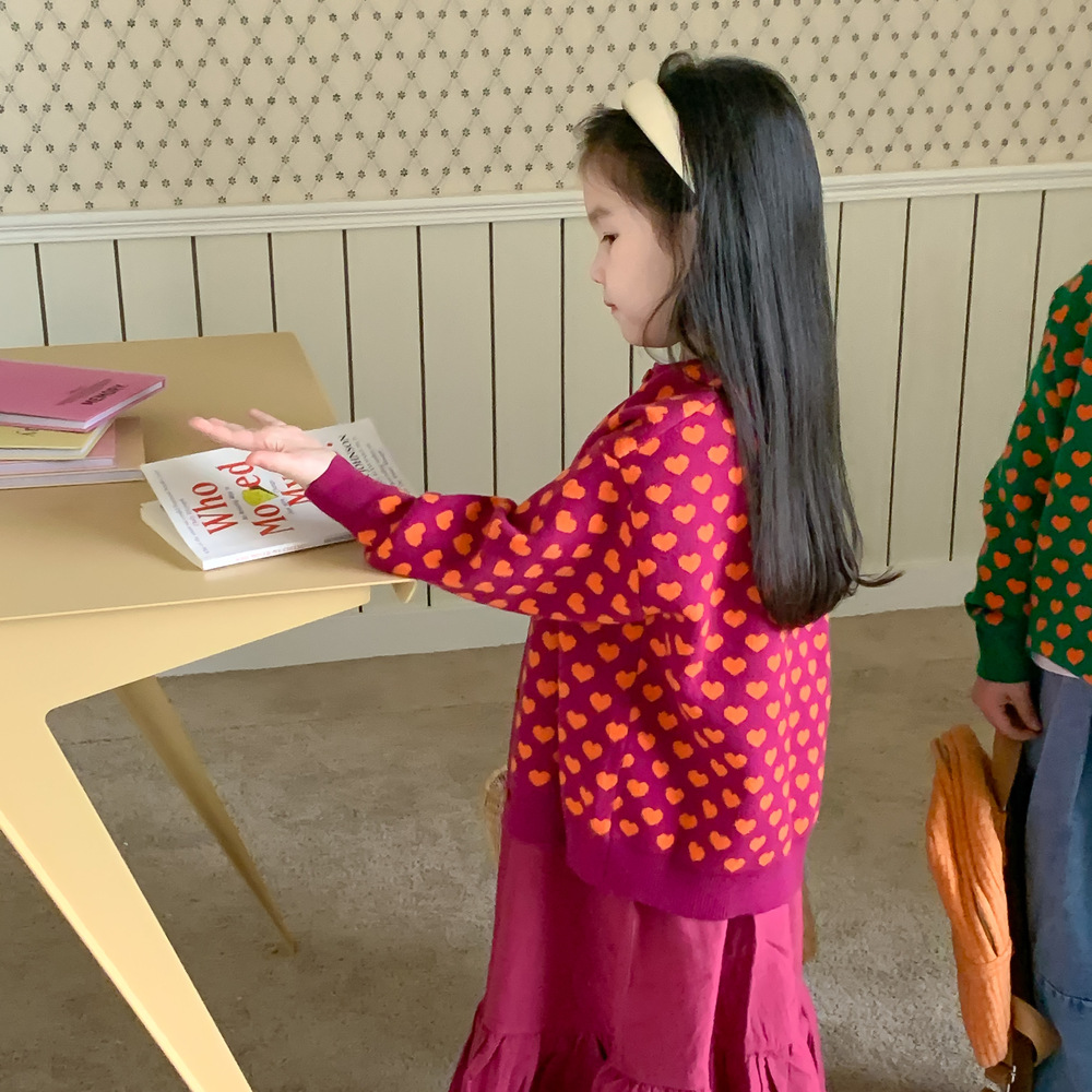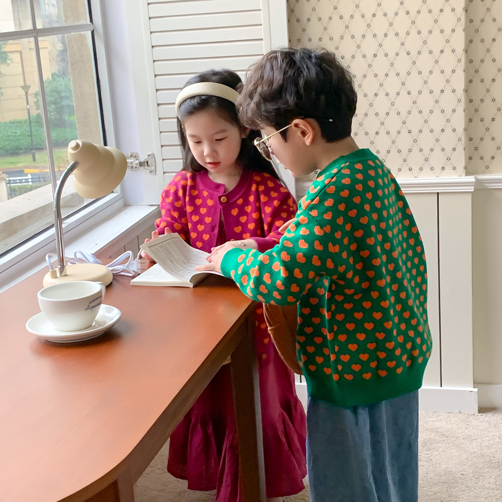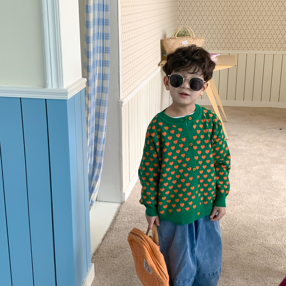 아동용 스웨터 2025 가을 모델 남녀공용 한국 스타일 하트 무늬 니트 가디건 어린이 라운드넥 캐주얼 울 코트스토어 가기