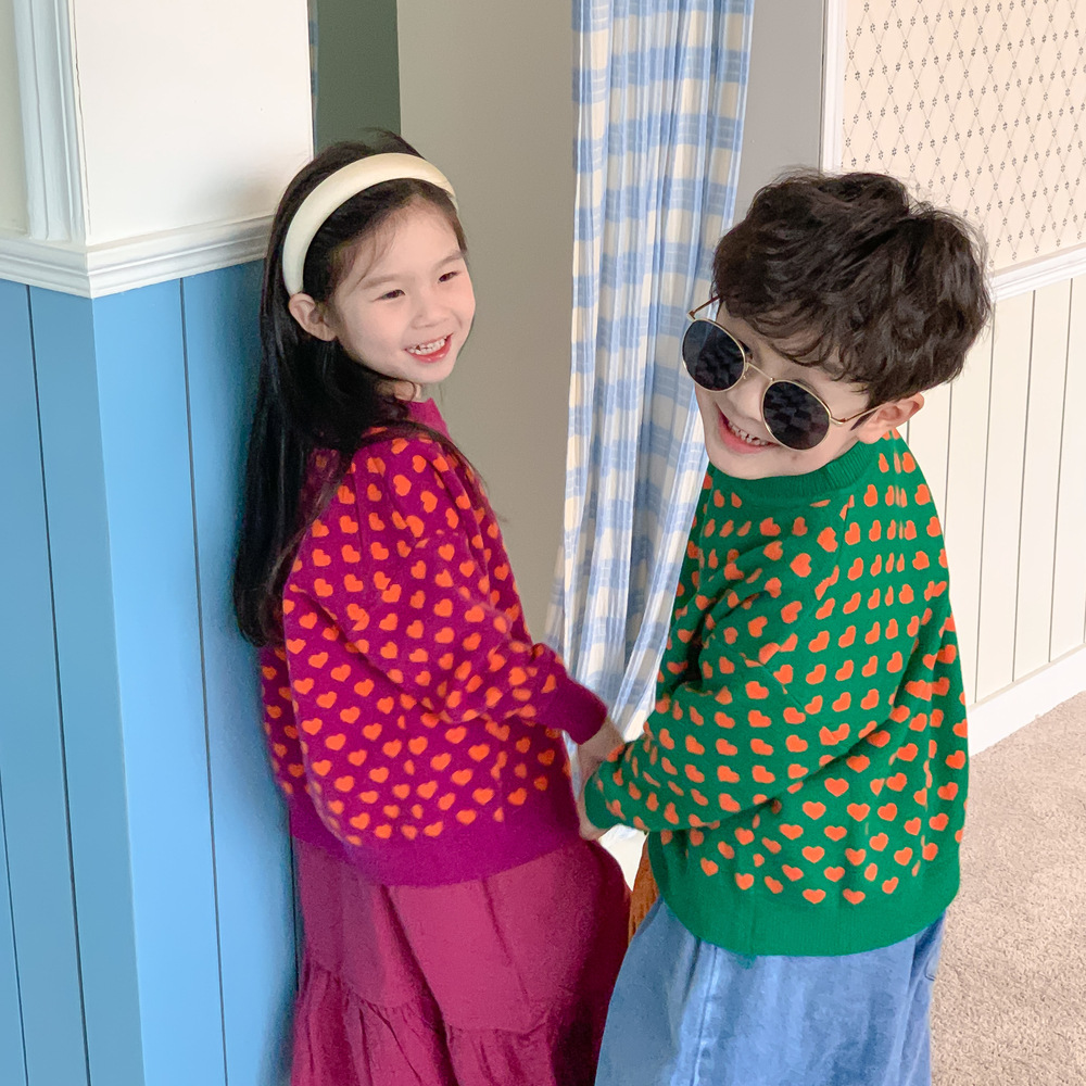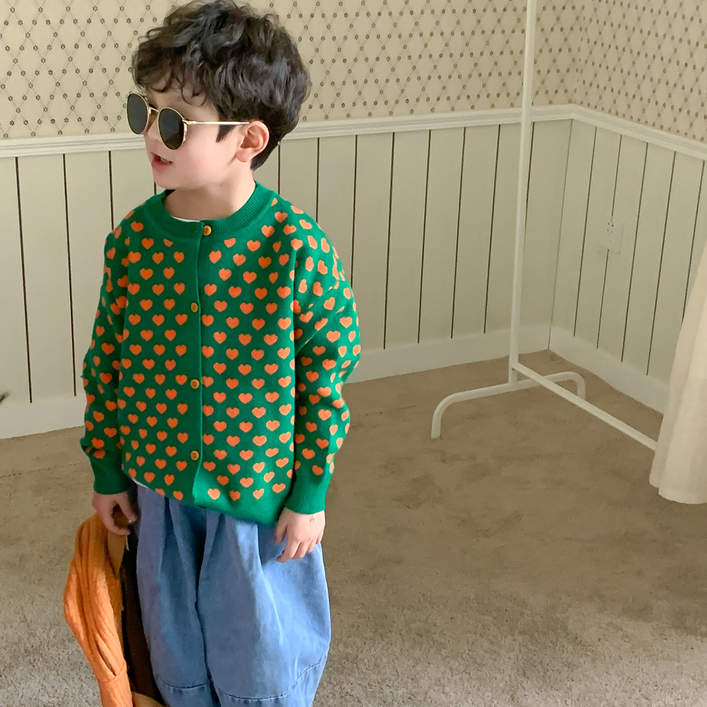 아동용 스웨터 2025 가을 모델 남녀공용 한국 스타일 하트 무늬 니트 가디건 어린이 라운드넥 캐주얼 울 코트