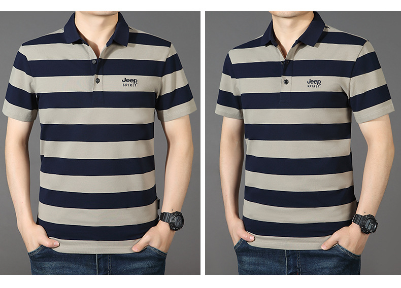 지프 스피릿 남성용 반팔 티셔츠 스트라이프 플러스 사이즈 라펠 반소매 티셔츠 폴로 6606스토어 가기