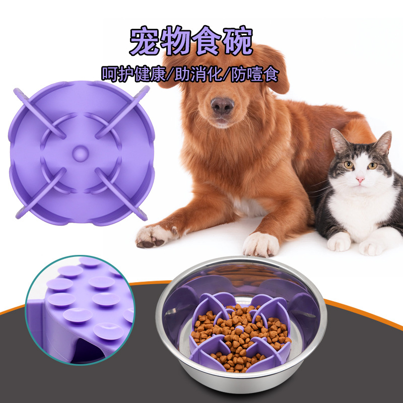 아마존 새로운 개 고양이 수유 그릇 식기 노크 방지 패드 흡입 컵 플레이트 슬로우 푸드 분지 실리콘 애완 동물