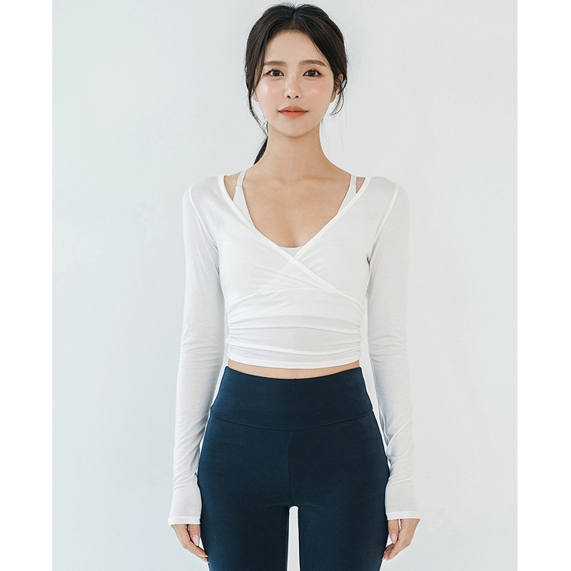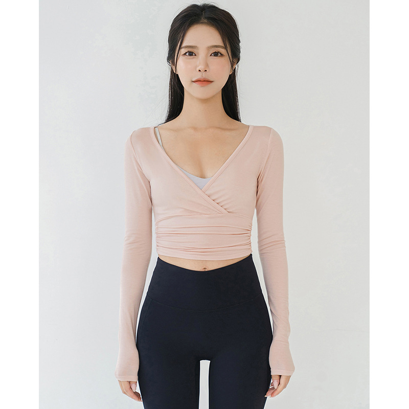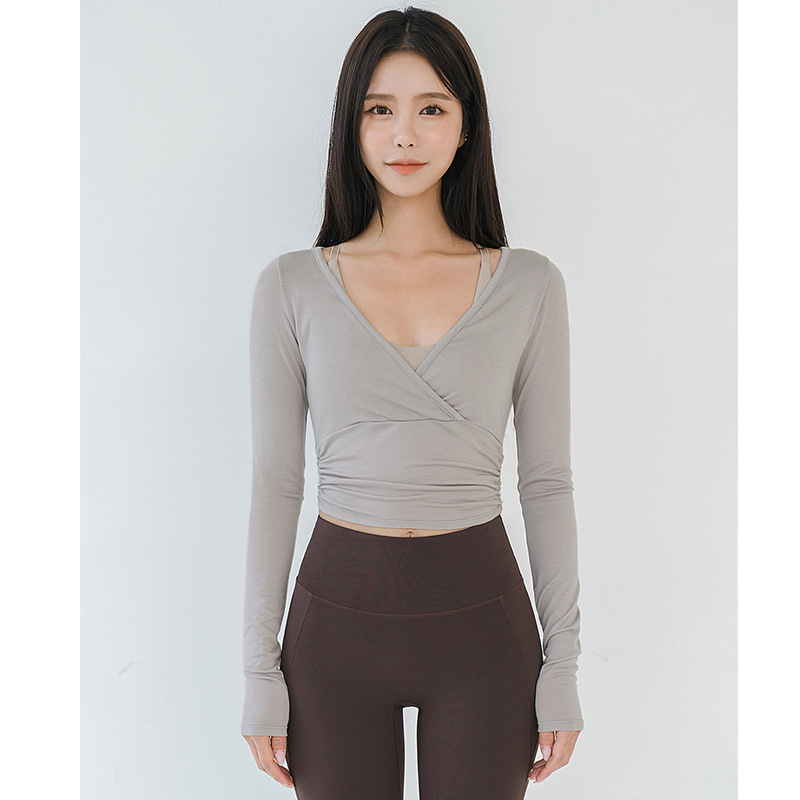 2023 크로스 보더 새로운 요가 세트 크로스 주름 깊은 V 섹시 스포츠 피트니스 최고 통기성 속건 필라테스 세트