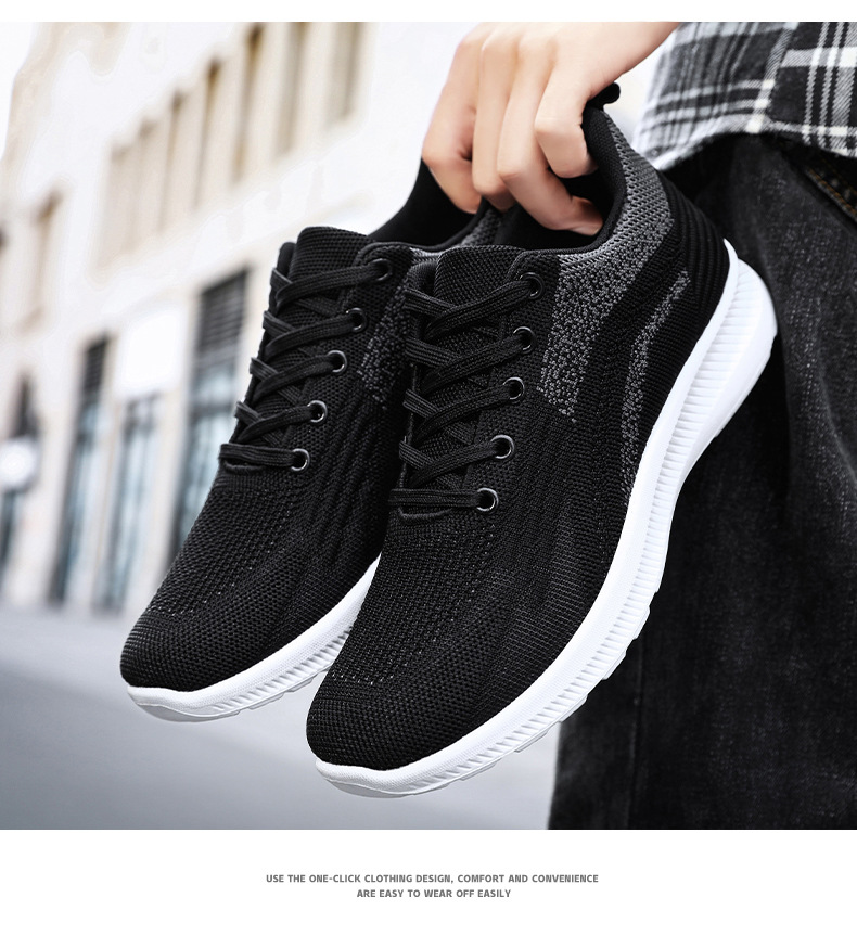 남성 신발 2023 가을 새로운 통기성 캐주얼 신발 제조 업체 도매 플라이 짠 남성 운동화 한국 레이스 업 신발스토어 가기