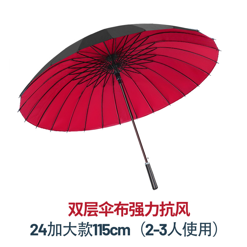 자동 24본 더블 레이어 직선형 대형 우산, 대형 곡선 손잡이, 긴 손잡이, 이중 대형 비즈니스 남녀 써니 우산