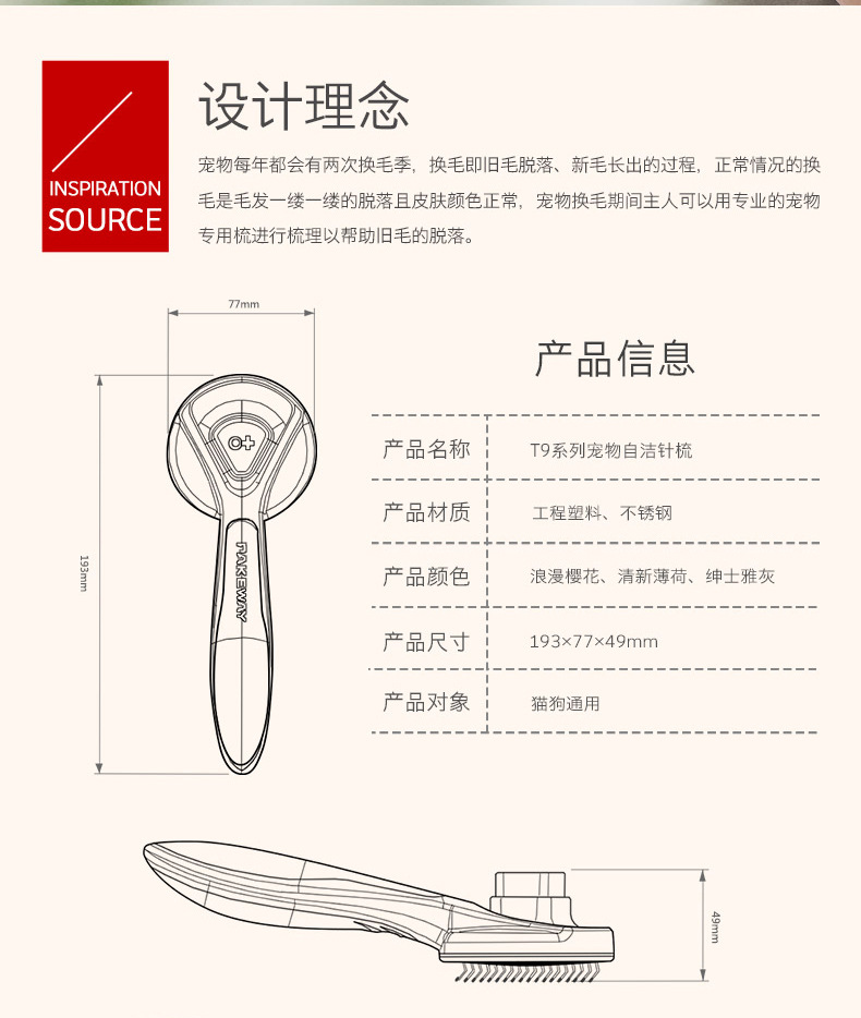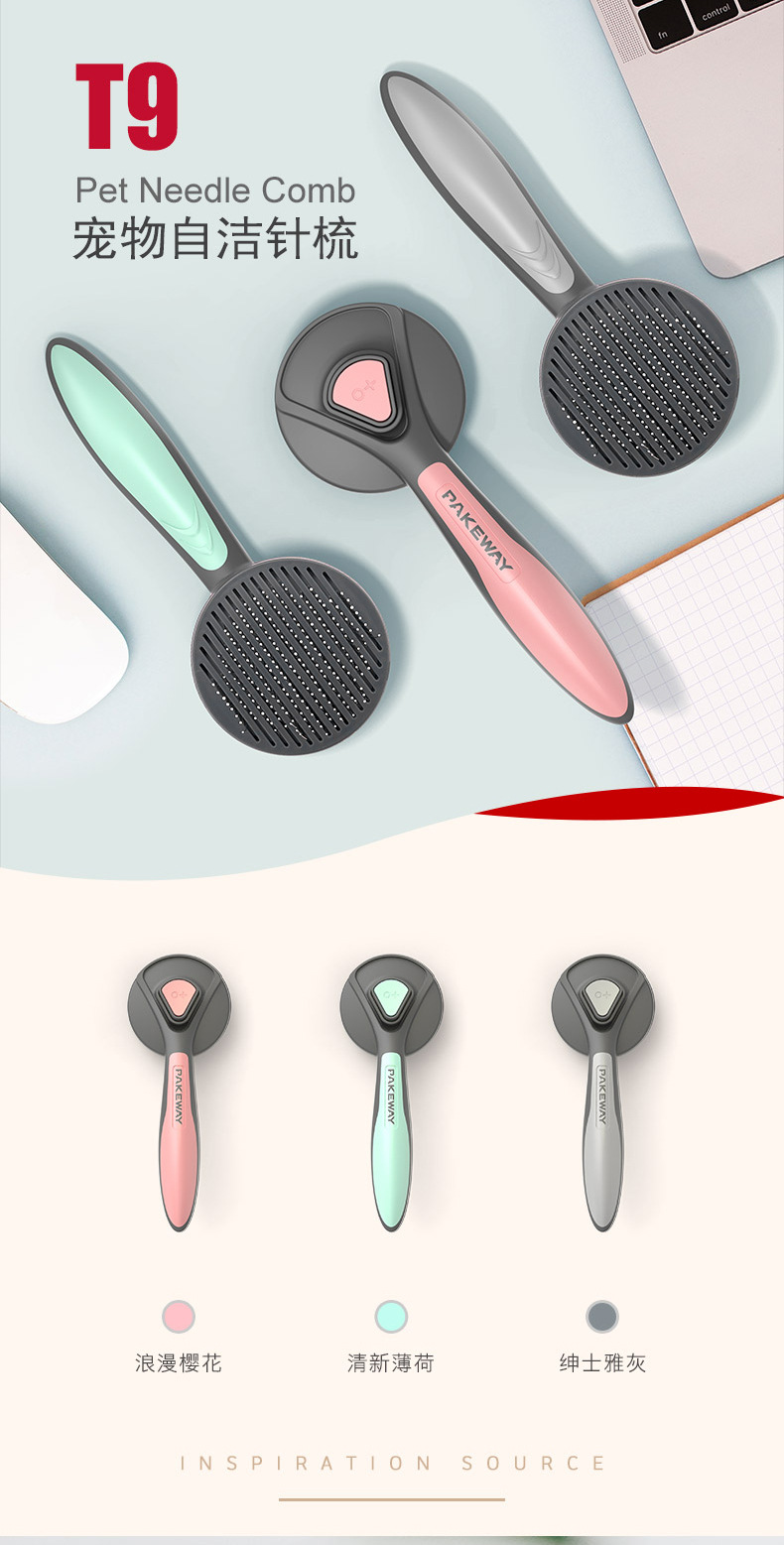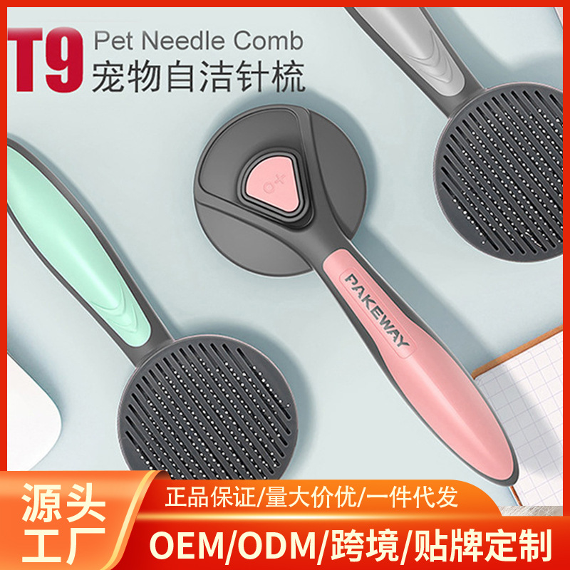 공장 직접 애완 동물 빗 머리 제거 브러시 고양이 머리 제거 개 마사지 빗 T9 자체 청소 빗 청소 용품스토어 가기