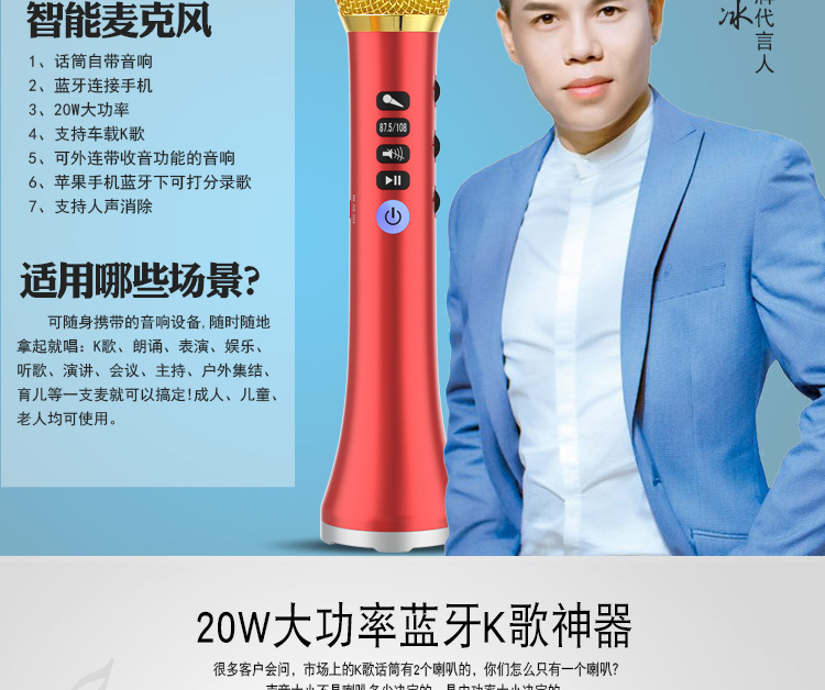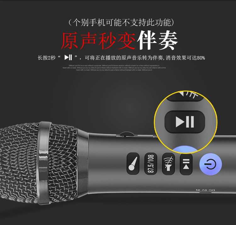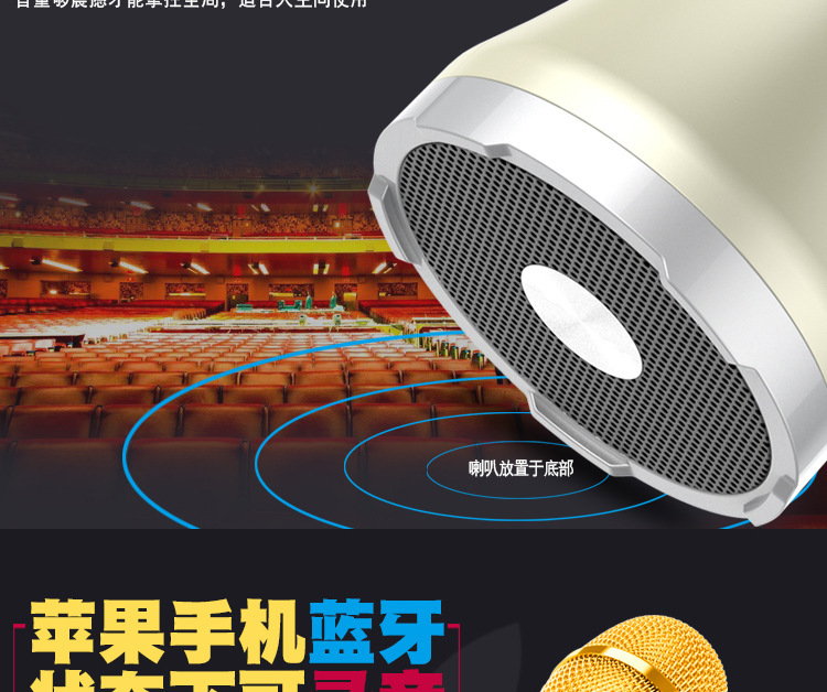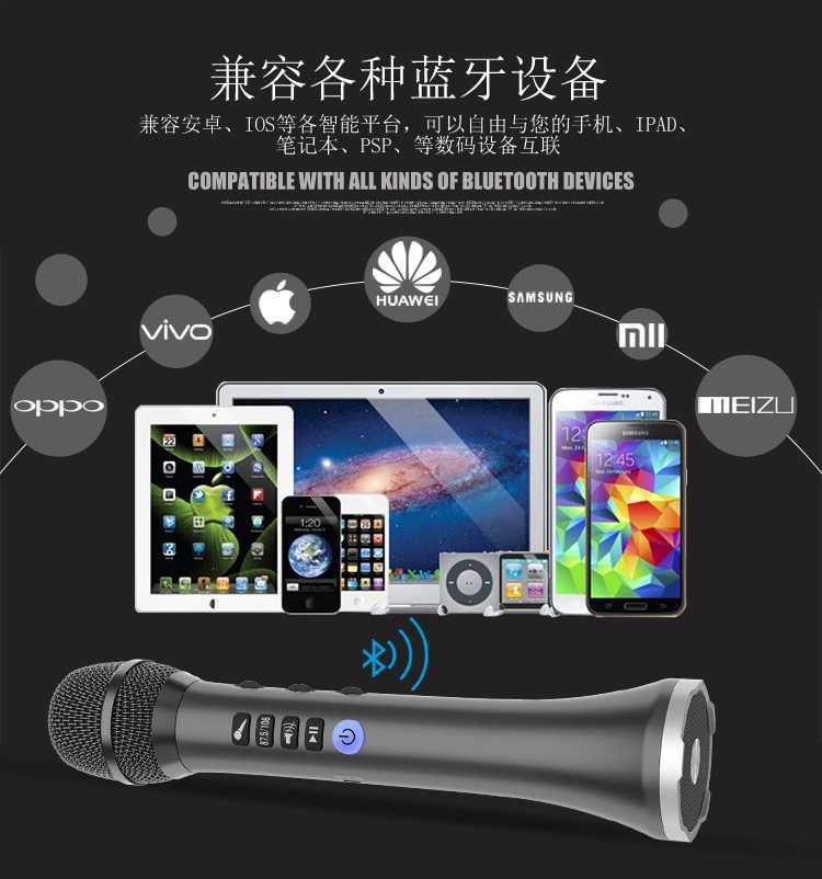 欢迎使用本公司的这款产品!该产品完全可以满足唱歌爱好者的唱歌爱好,当用手机唱歌APP唱歌时,以iphone为例,不仅伴奏正常,清晰,而且它还使您能够无线录制高质量的声音。内置的高品质DSP芯片使产品具有大低音,清晰的高音和丰满的立体声音质。