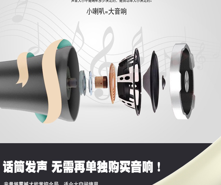 6.采用高成本动圈/动态麦克风芯和20w大输出扬声器;