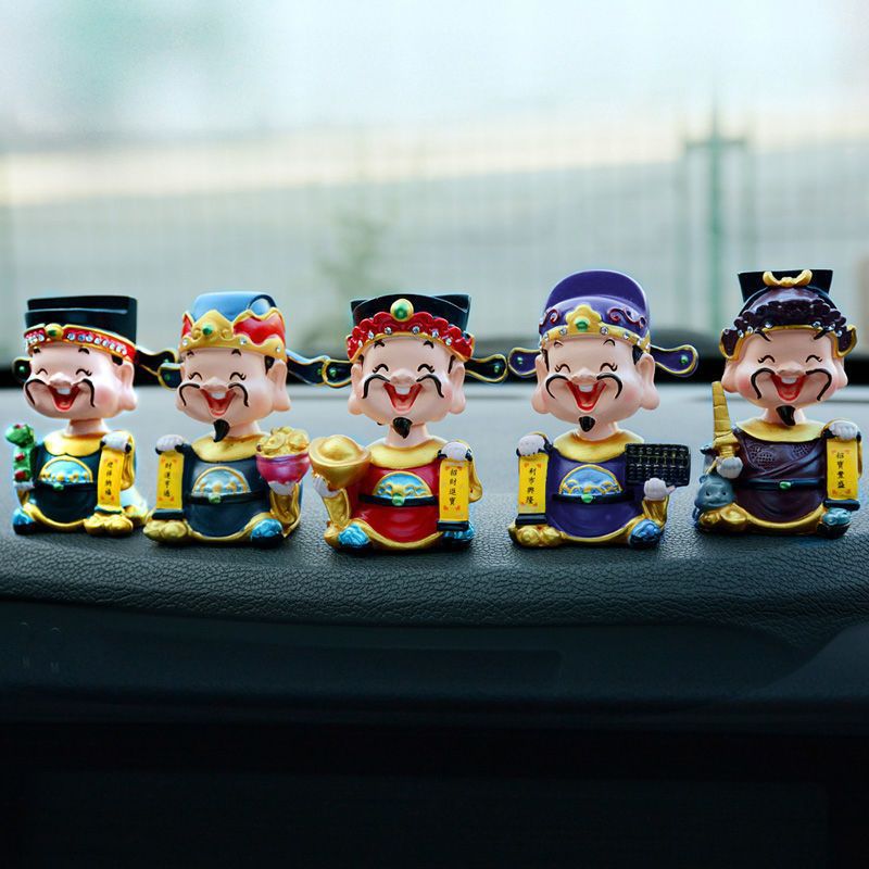 도매 창조적 인 자동차 장식품은 안전 성격 귀여운 자동차 장식 용품을 보장하기 위해 돈을 벌기 위해 부의 5 도로 신을 흔든다스토어 가기