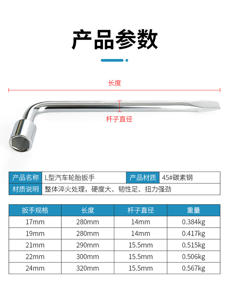 L형 타이어 렌치 소켓 프라이 바 플랫 헤드 노동 절약 분해 자동차 타이어 교체 공구 17/19/21/22/24mm