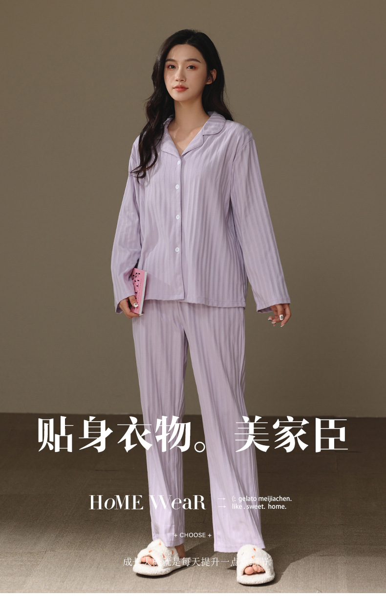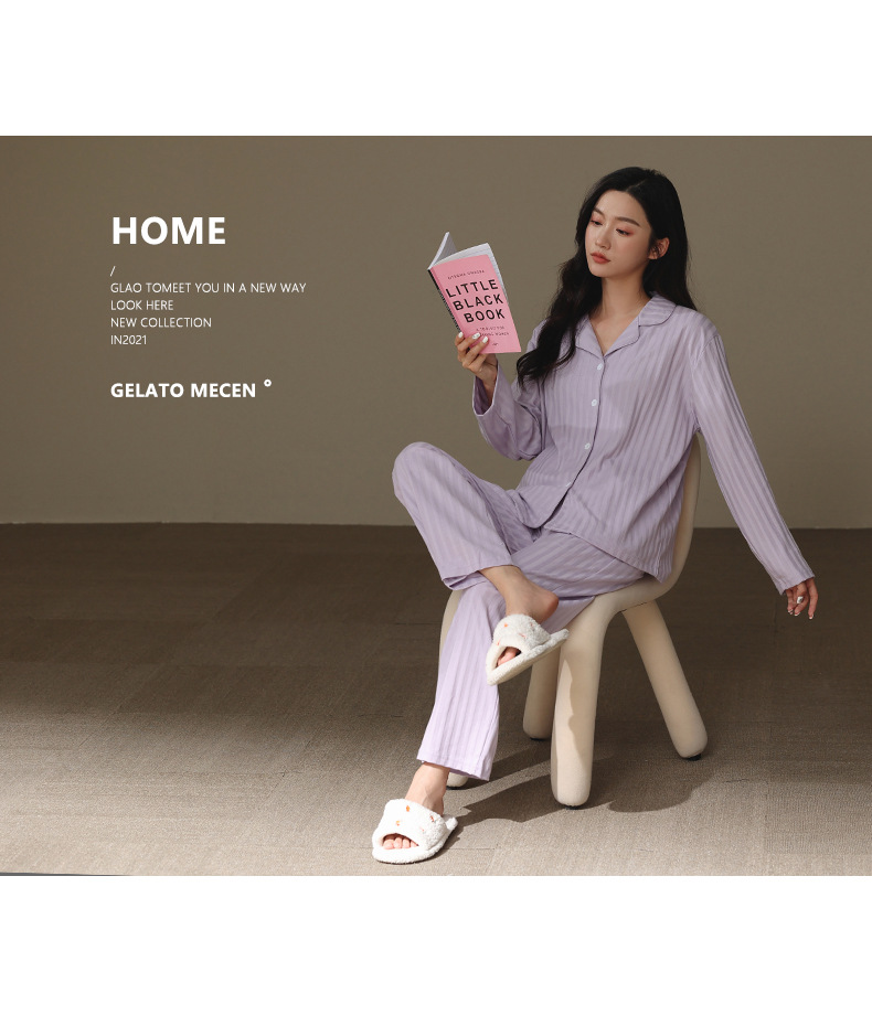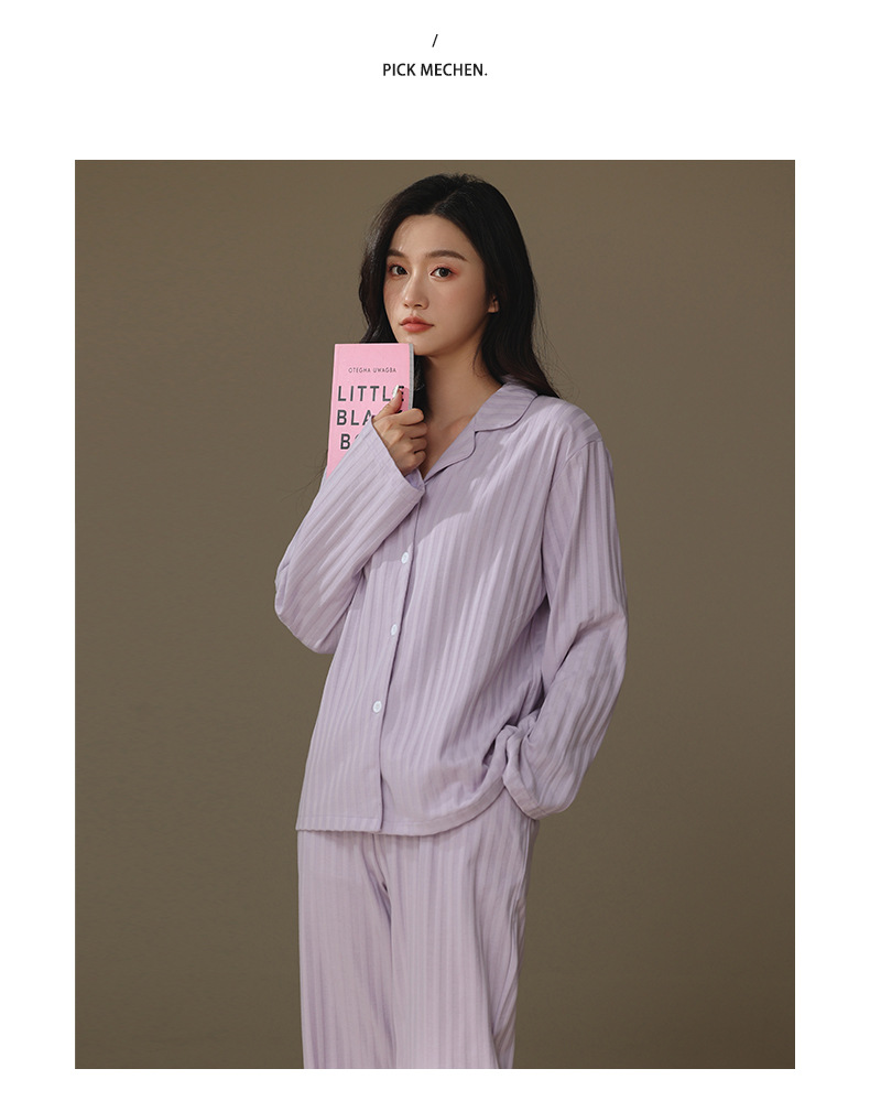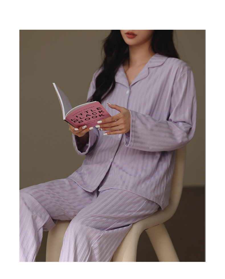 새로운 여성 잠옷을 2023 순수한 욕망 스타일 봄과 가을면 긴팔 카디건 라이트 퍼플 투피스 세트 슬리밍 홈웨어스토어 가기