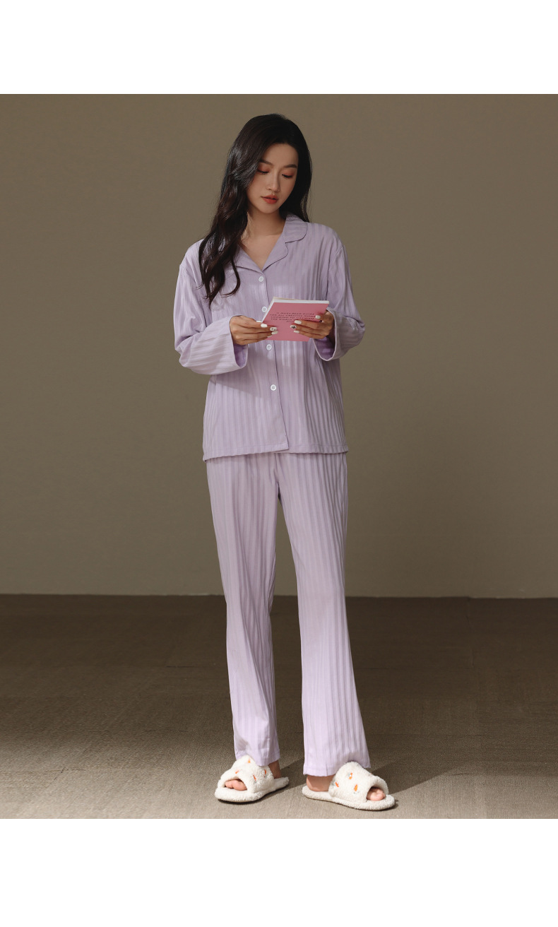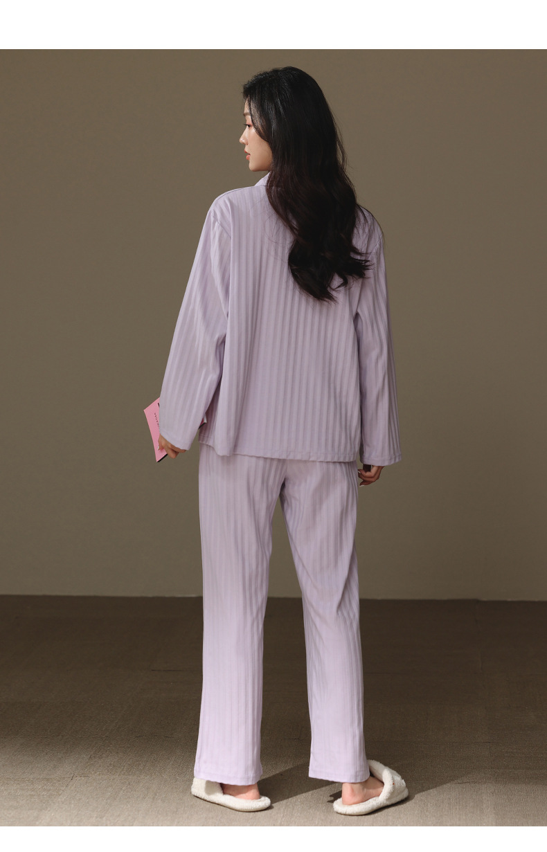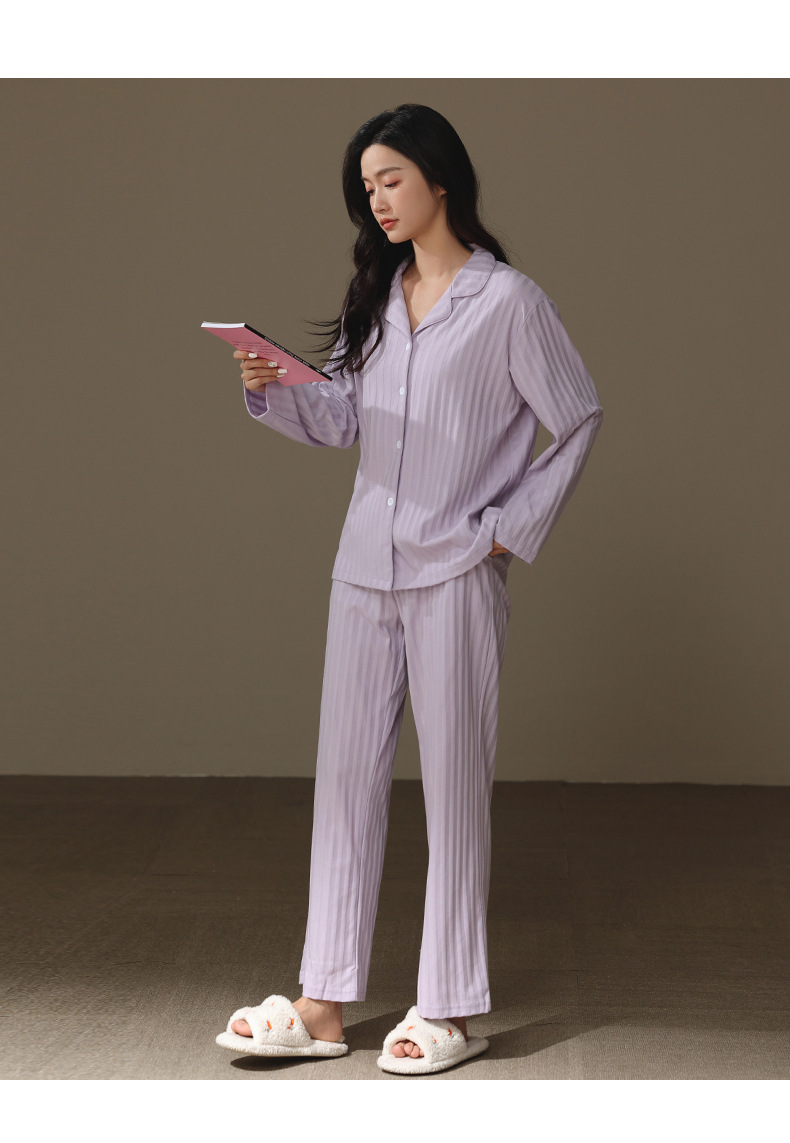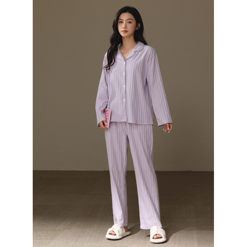 새로운 여성 잠옷을 2023 순수한 욕망 스타일 봄과 가을면 긴팔 카디건 라이트 퍼플 투피스 세트 슬리밍 홈웨어