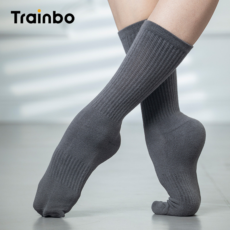 Trainbo 모던 댄스 양말 댄스 클래식 댄스 미끄럼 방지 연습 양말 면 긴 튜브 남성과 여성의 두꺼운 발레 양말