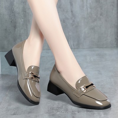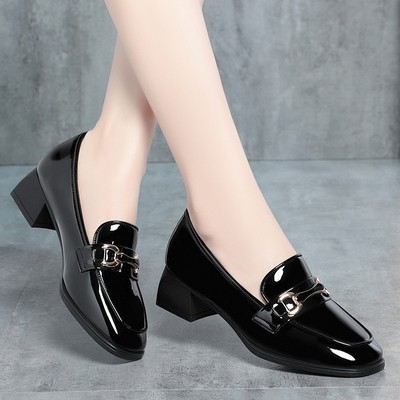 페이턴트 가죽 로퍼 여성용 봄 미드 힐 가죽 신발 2023 새로운 스타일 두꺼운 굽 여성 신발 중년 여성 신발 깊은 입 싱글 레이어 신발스토어 가기