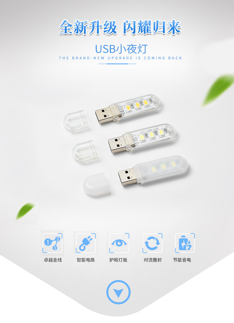 새로운 USB 램프 3LED 램프 USB 야간 조명 학생 기숙사 램프 모바일 전원 램프 USB 램프스토어 가기