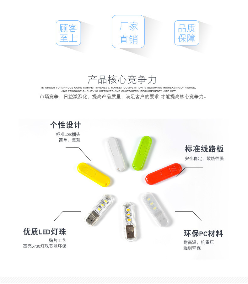 새로운 USB 램프 3LED 램프 USB 야간 조명 학생 기숙사 램프 모바일 전원 램프 USB 램프