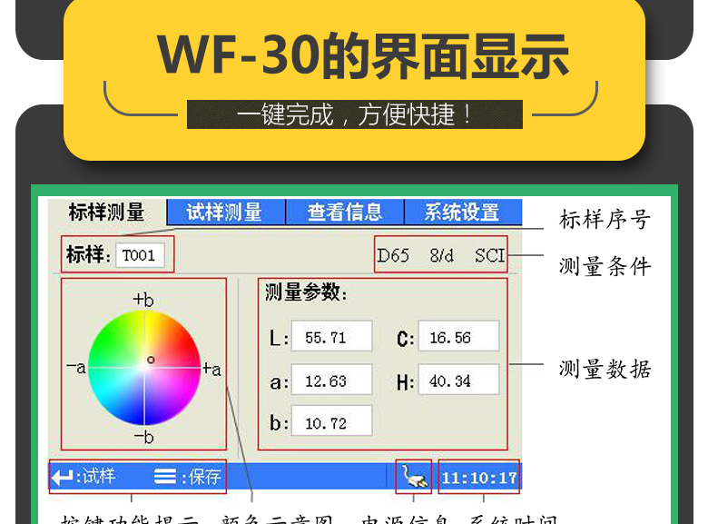 FRU Weifu 광전 WF30 정밀 색상 차이 측정기 손 수평 색상 차이 측정기 섬유 플라스틱 의류 가죽 색상 측정기
