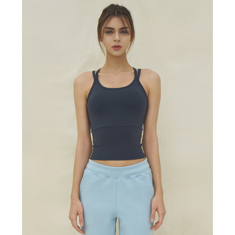 2023 유럽과 미국 대외 무역 새로운 요가 피트니스 스포츠 조끼 얇은 어깨 스트랩 크로스 슬링 조끼 요가 의류스토어 가기