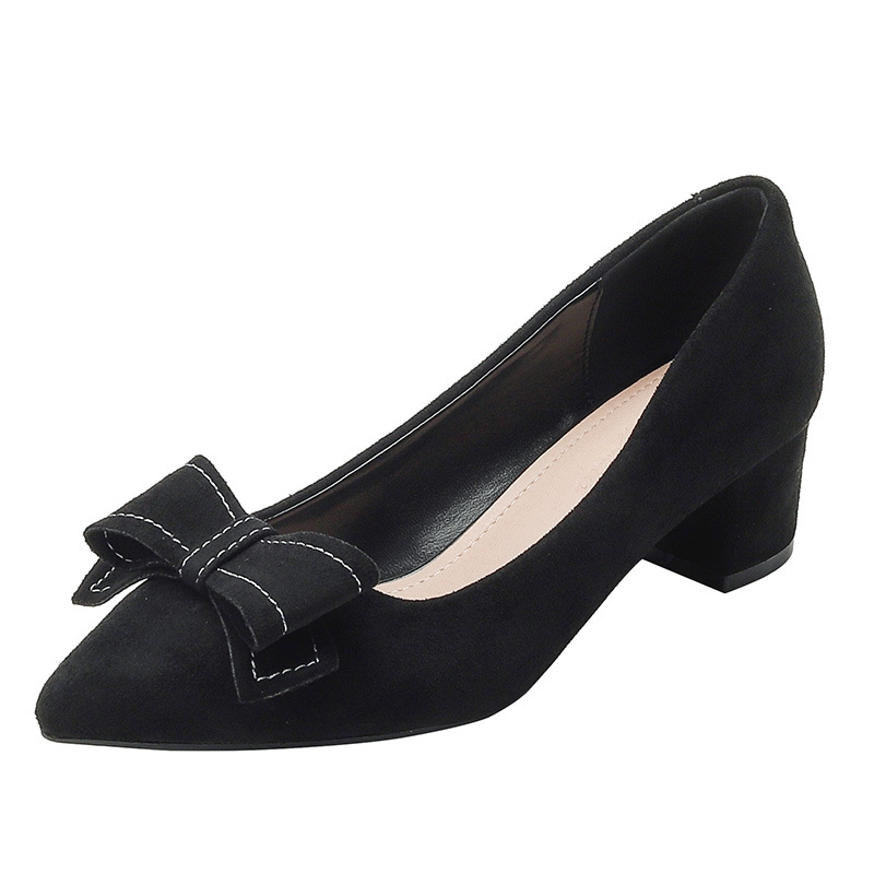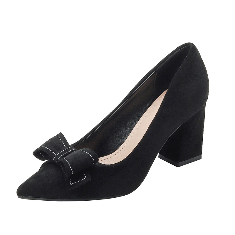 6688-30 여성용 스웨이드 하이힐, 봄 가을 신상 프랑스 패션, 다용도 얕은 앞코 블랙 작업용 두꺼운 굽 신발스토어 가기