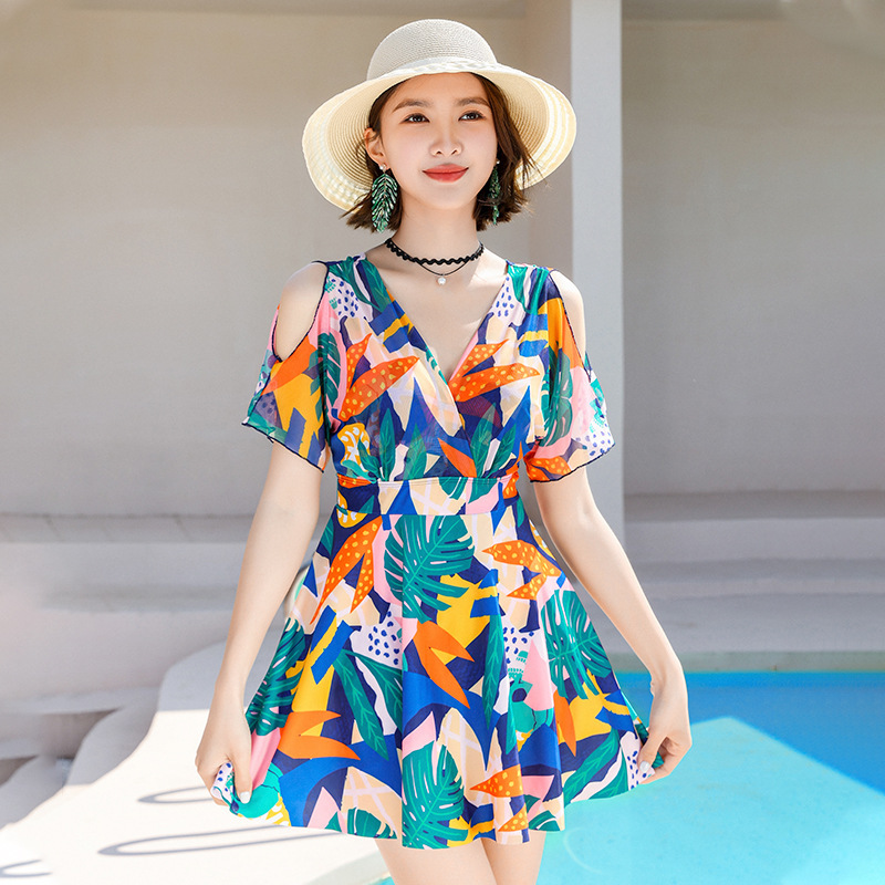 여성용 원피스 수영복, 스커트 스타일, 브이넥, 슬림핏, 온천 수영복, 해변 휴가용, 큰 사이즈, 보수적인 수영복, 반팔스토어 가기