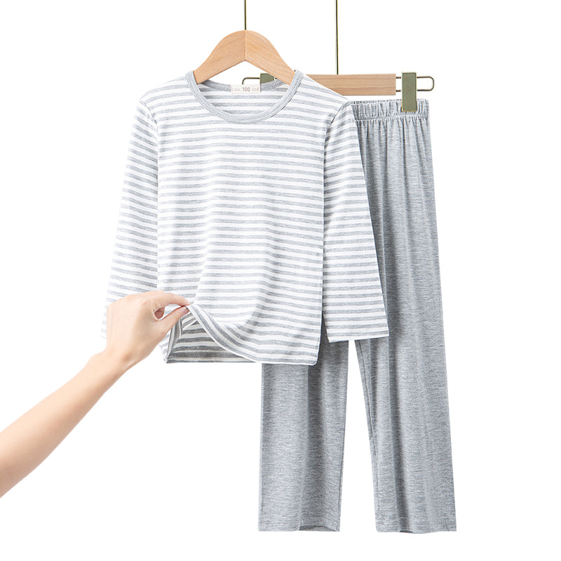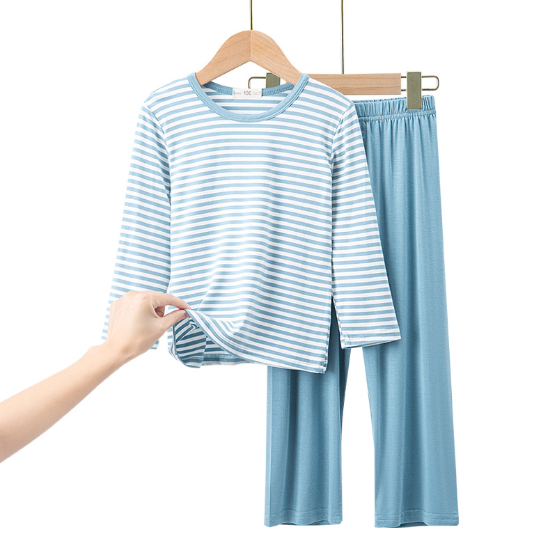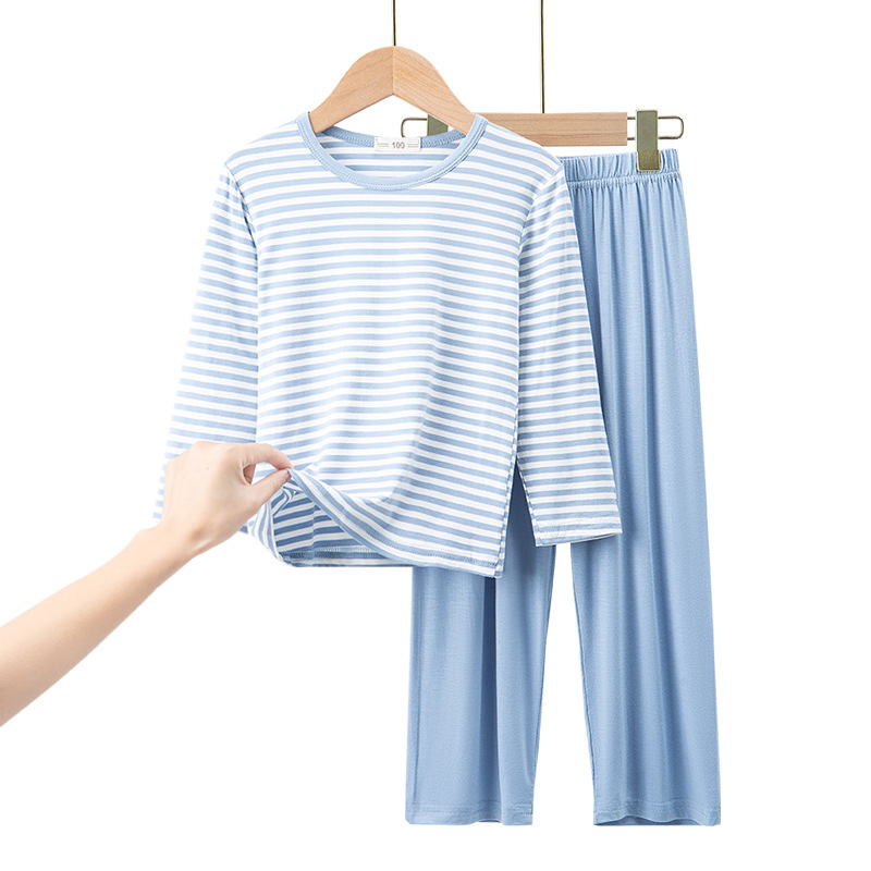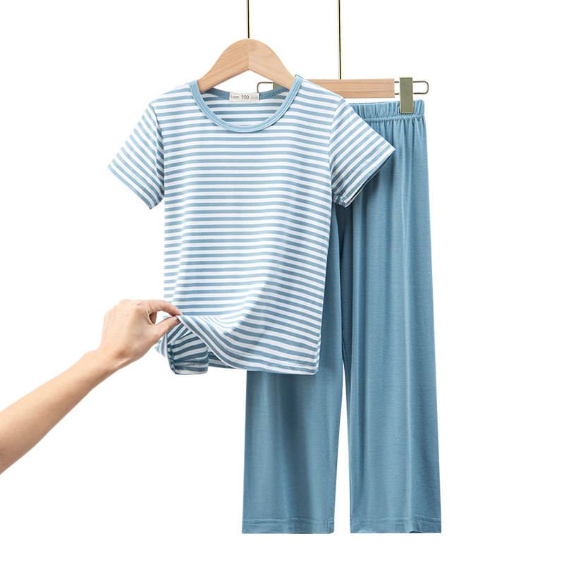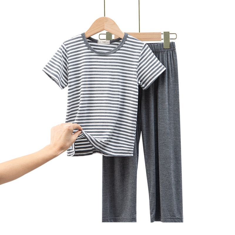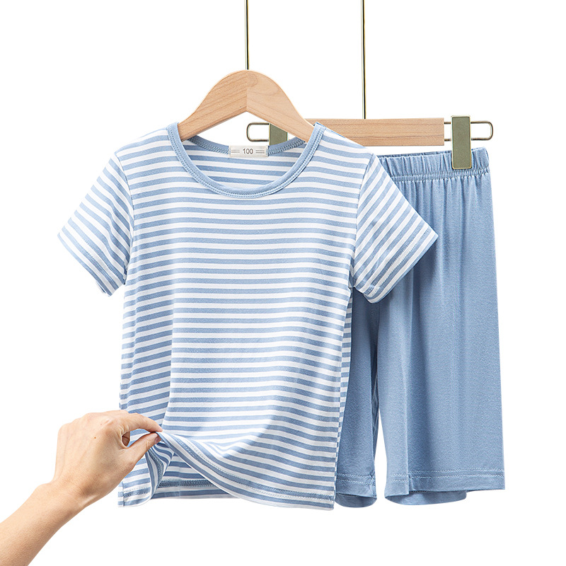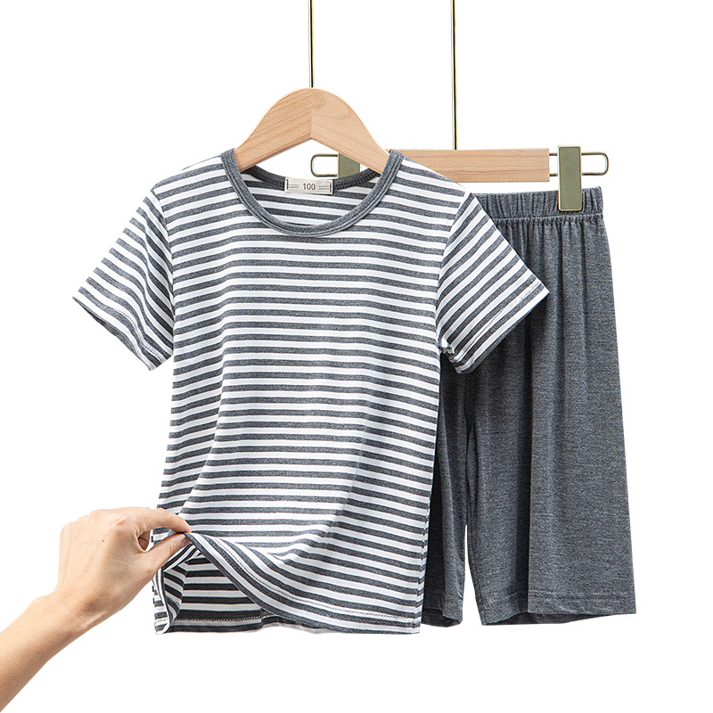 어린이 모달 스트라이프 반팔 세트 남아 가정복 반바지 잠옷 겉옷 봄과 여름 새로운
