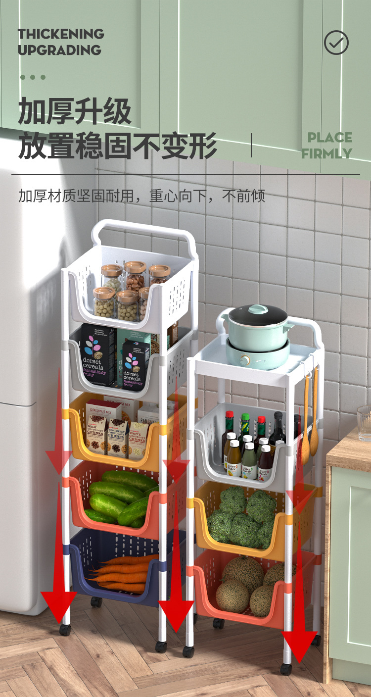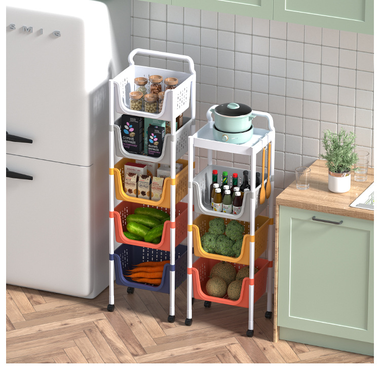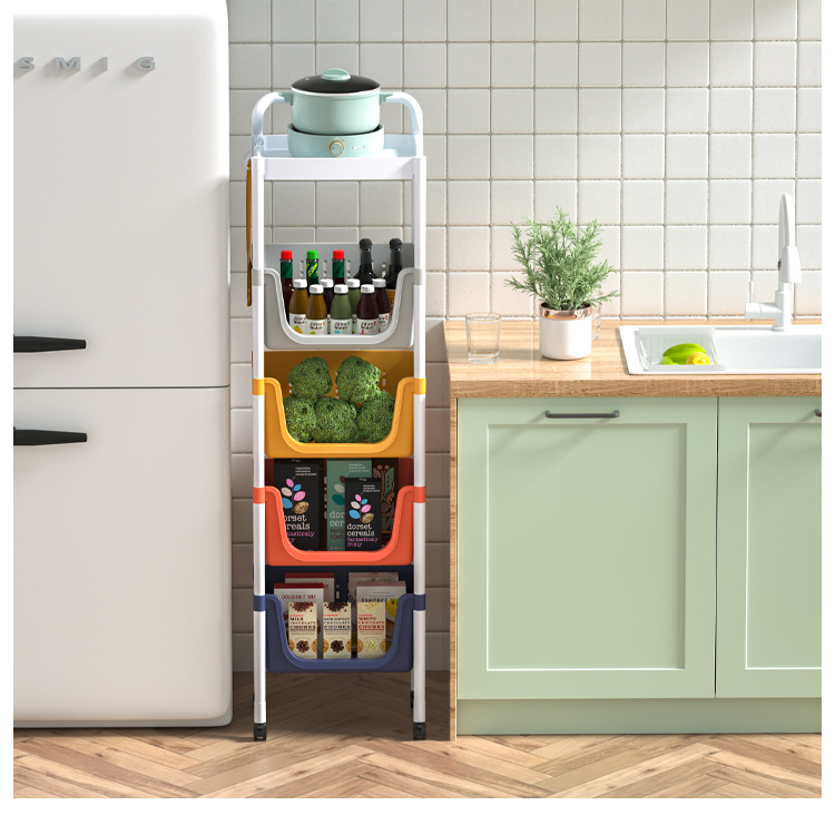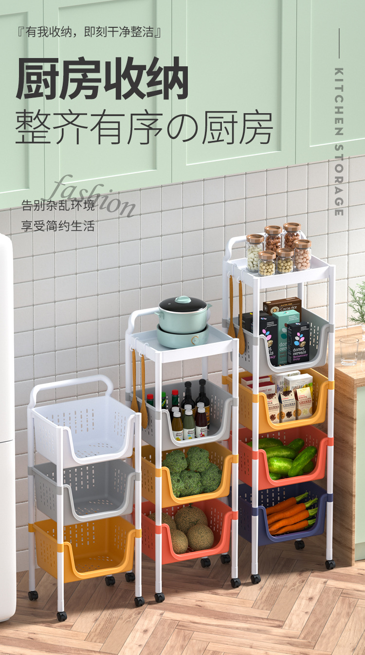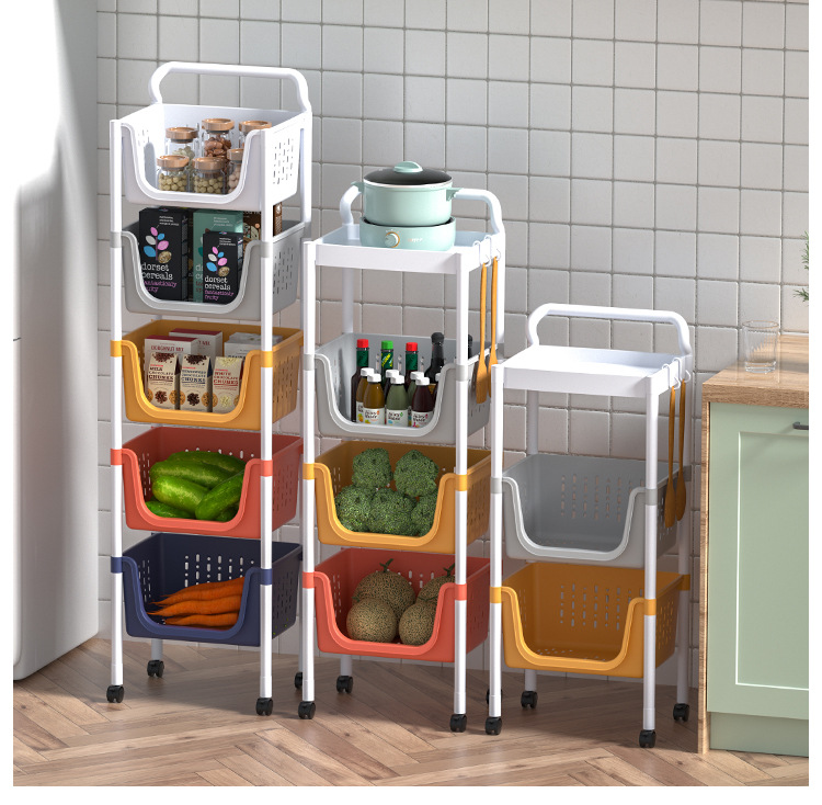 주방 수납 랙 다층 보관 선반 야채 바구니 바닥에 서있는 플라스틱 조미료 다기능 카트 마감 랙스토어 가기