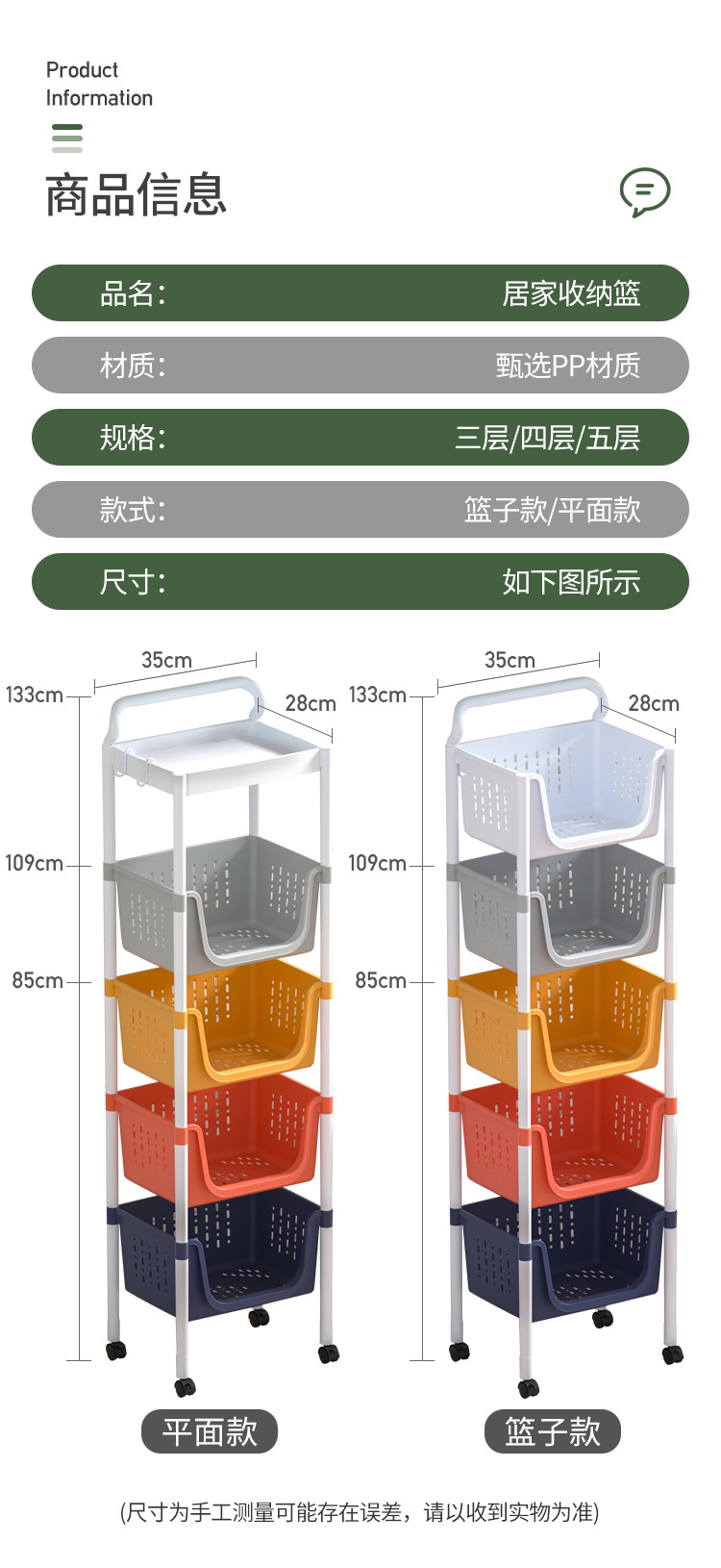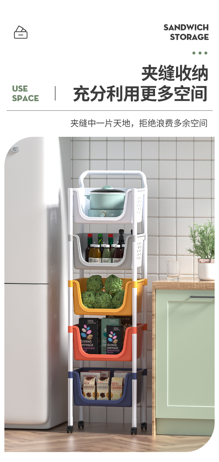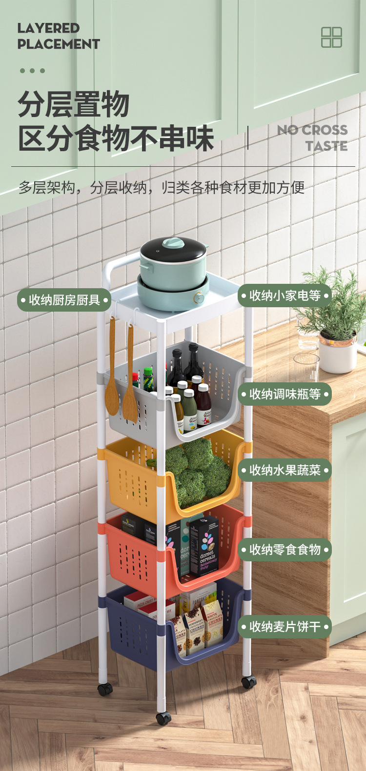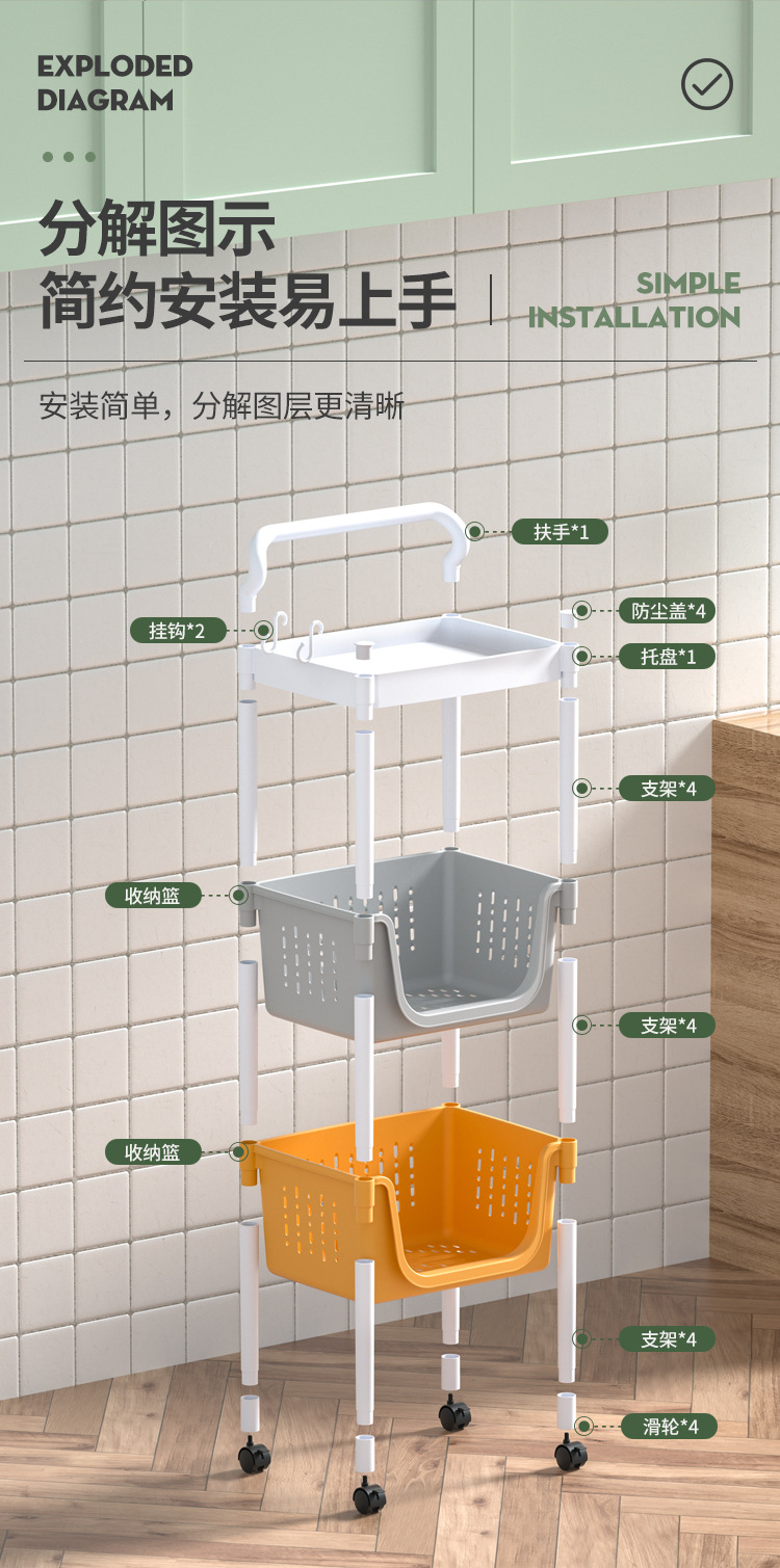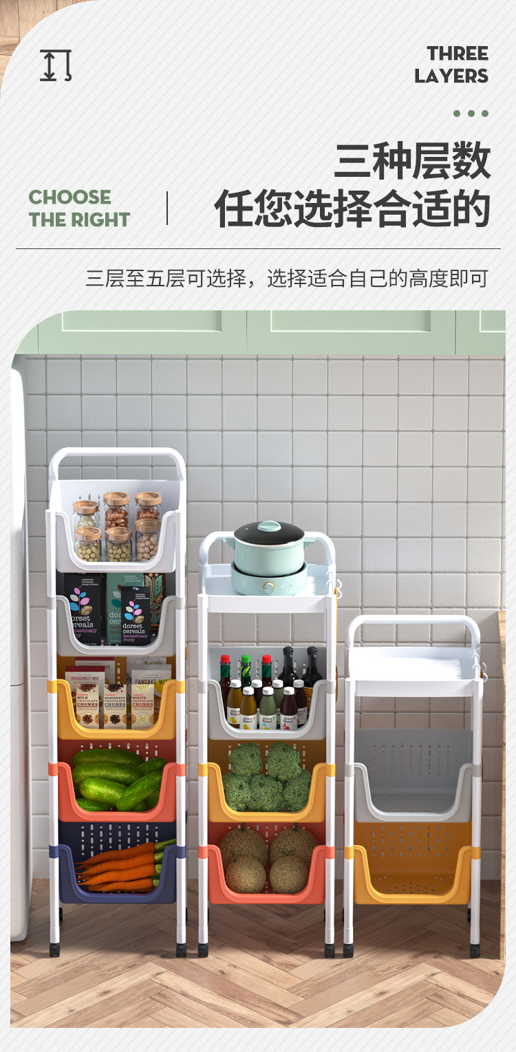 주방 수납 랙 다층 보관 선반 야채 바구니 바닥에 서있는 플라스틱 조미료 다기능 카트 마감 랙