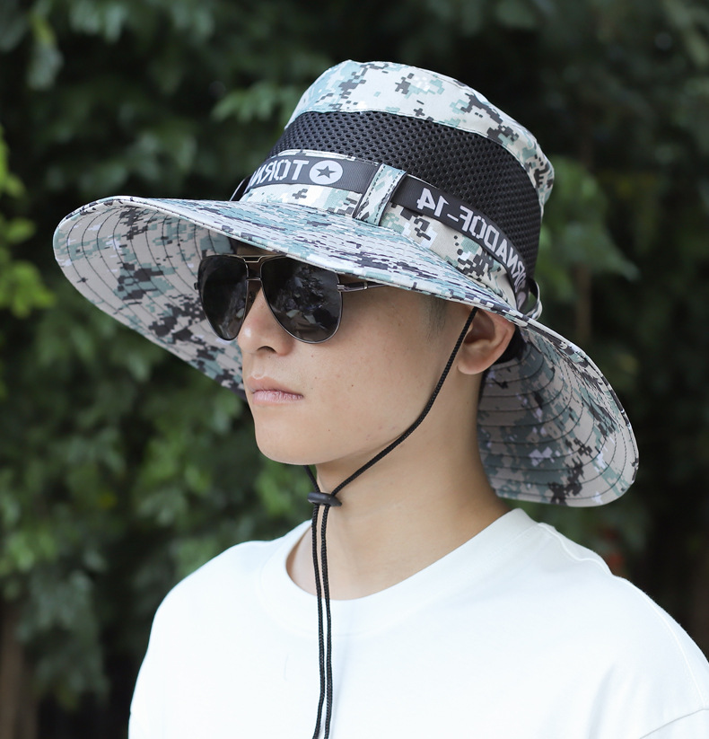 일본식 태양 모자 남성용 차양 새로운 위장 여름 여행 낚시 자외선 차단제 차양 야외 큰 이브 어부 모자 남성용