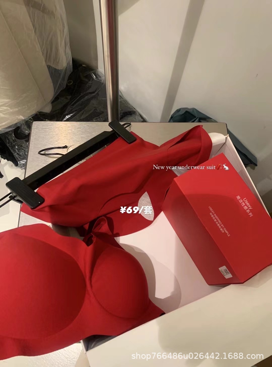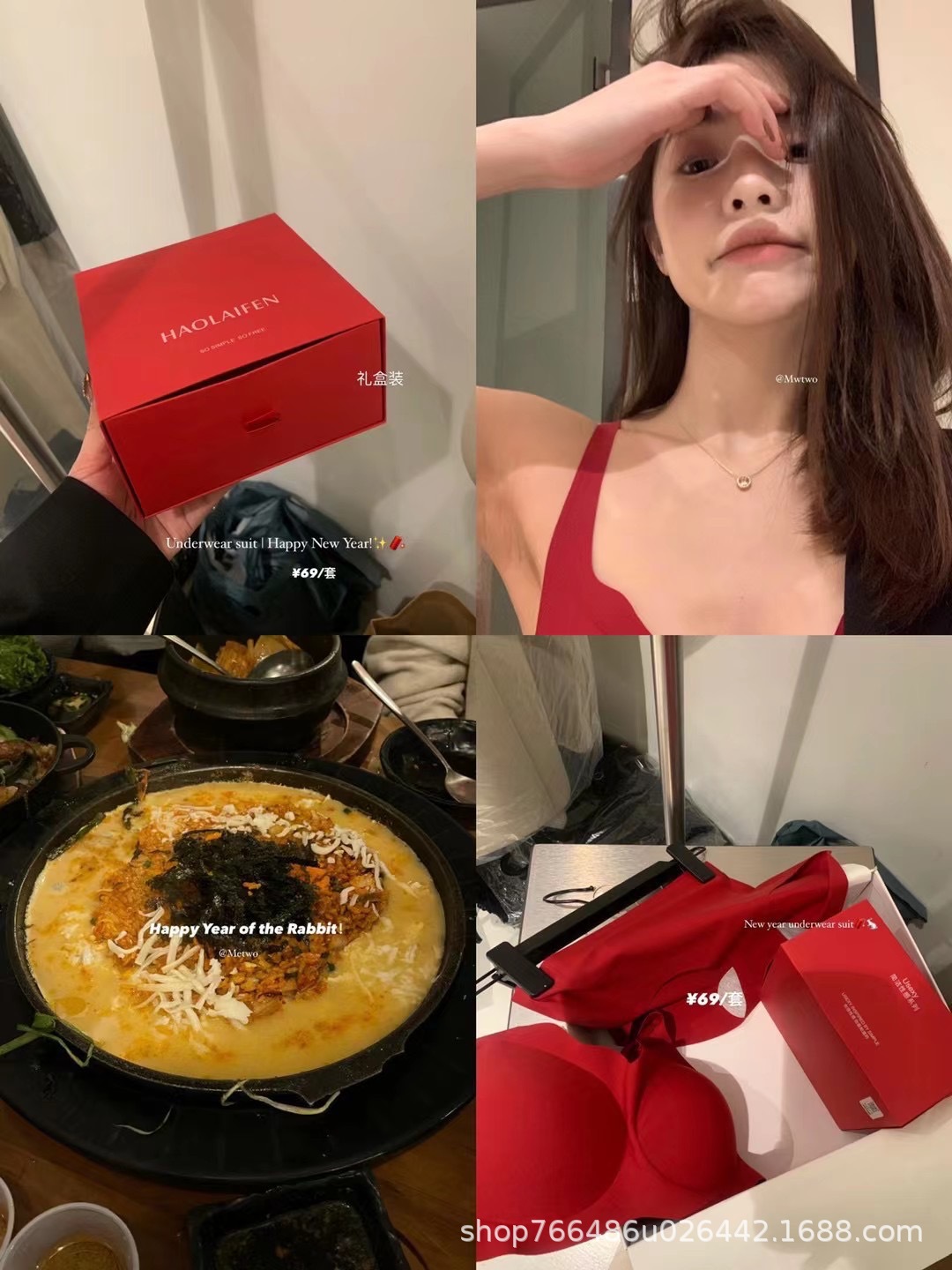 Metwo 토끼 해 독점 제한 새해 빨간 속옷 선물 상자 여자의 편안한 통기성 생일 년 여자의 브래지어 세트스토어 가기