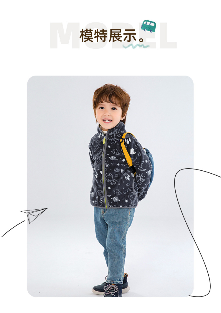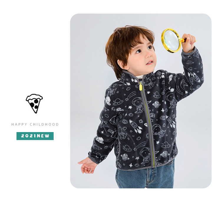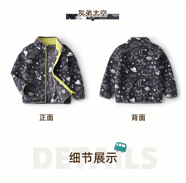 2025 가을, 겨울 새로운 우주 공룡 아기 폴라 플리스 재킷 얇은 긴 소매 스탠드 칼라 유행 어린이 wy1589스토어 가기