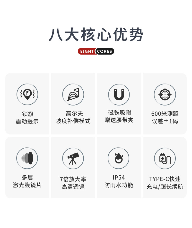 600米测距 | 坡度补偿模式 | 锁旗震动提示 | ||||