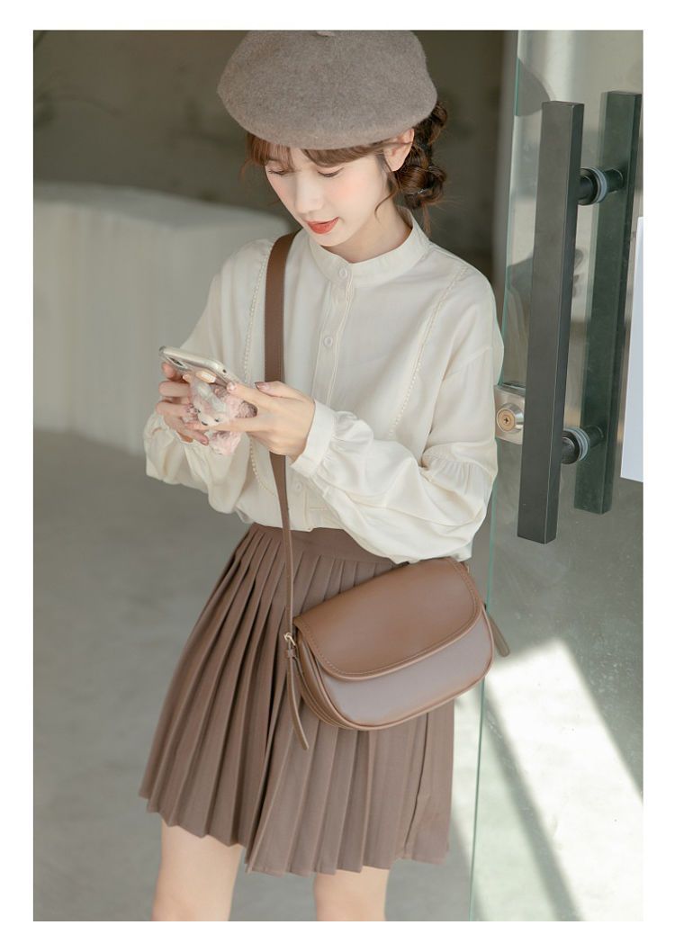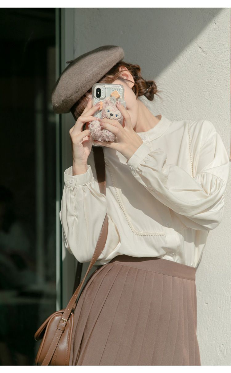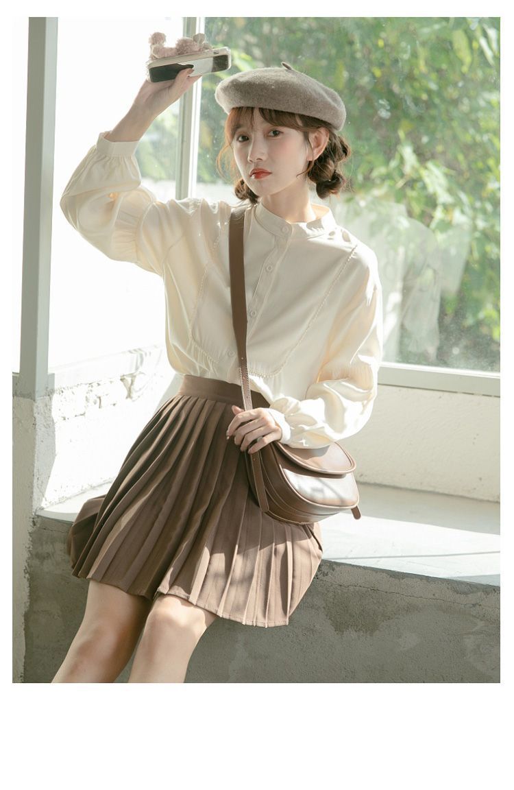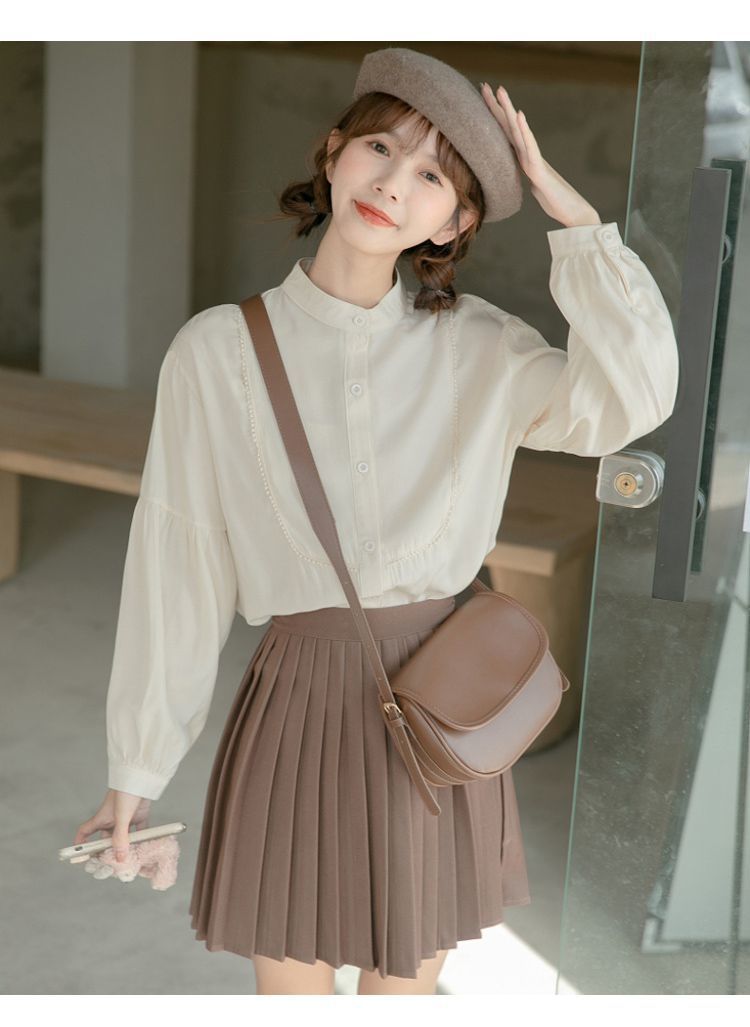 스탠드 칼라 셔츠 여성 디자인 느슨한 긴팔 셔츠 2025 새로운 봄, 가을 프랑스 학생 랜턴 슬리브 탑스토어 가기