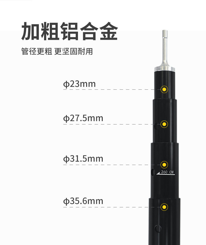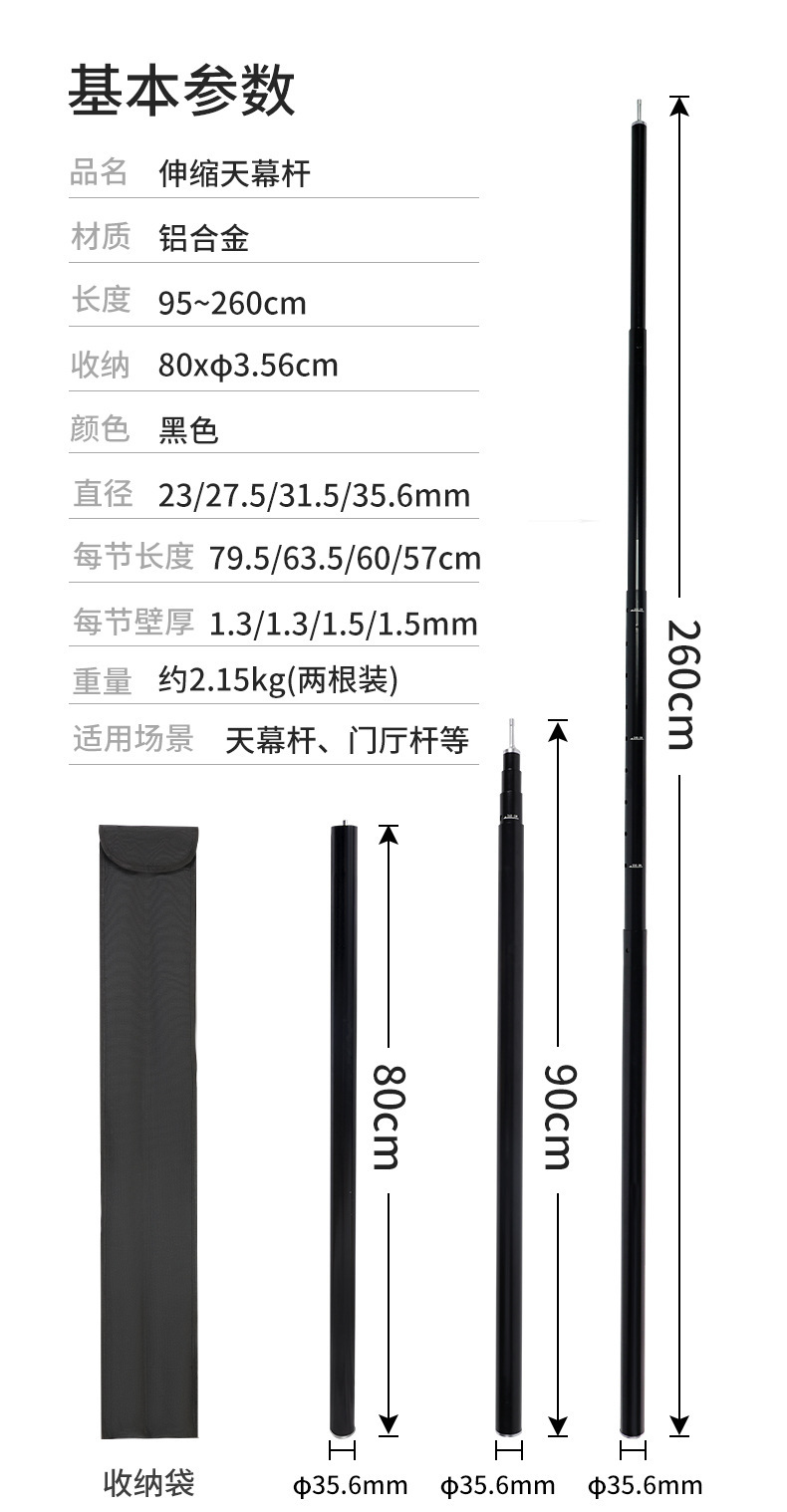 4 섹션 텔레스코픽 2.6m 캠핑 폴 알루미늄 합금 브래킷 폴 홀 텔레스코픽 서포트 폴 텐트 캐노피 폴
