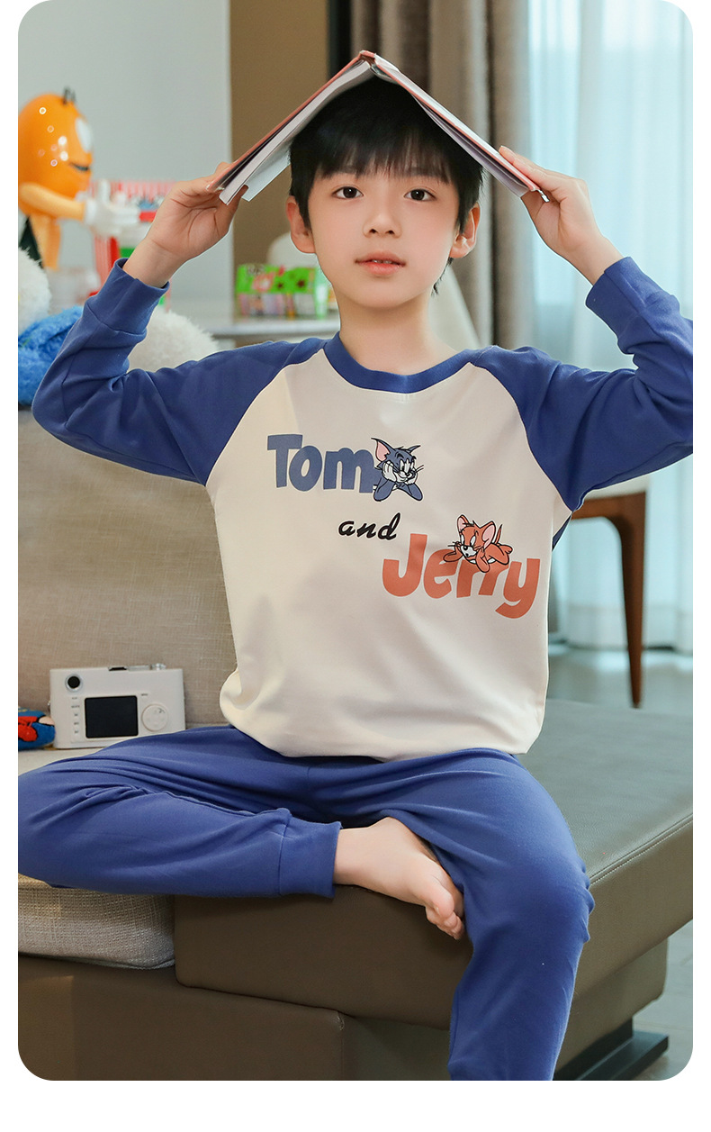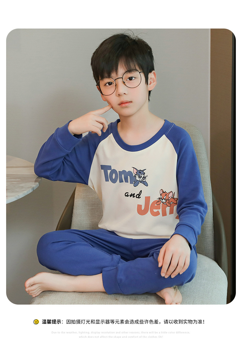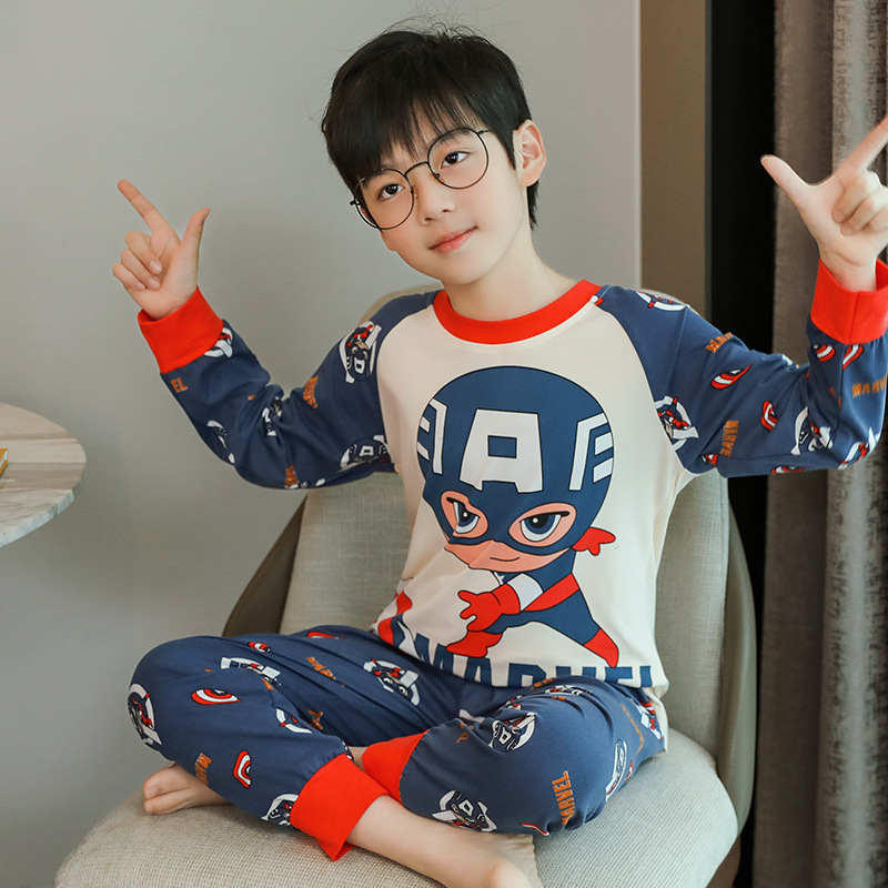 소년 가을 옷과 바지 세트 면 크루넥 어린이 속옷베이스 코튼 봄 가을과 겨울 잠옷
