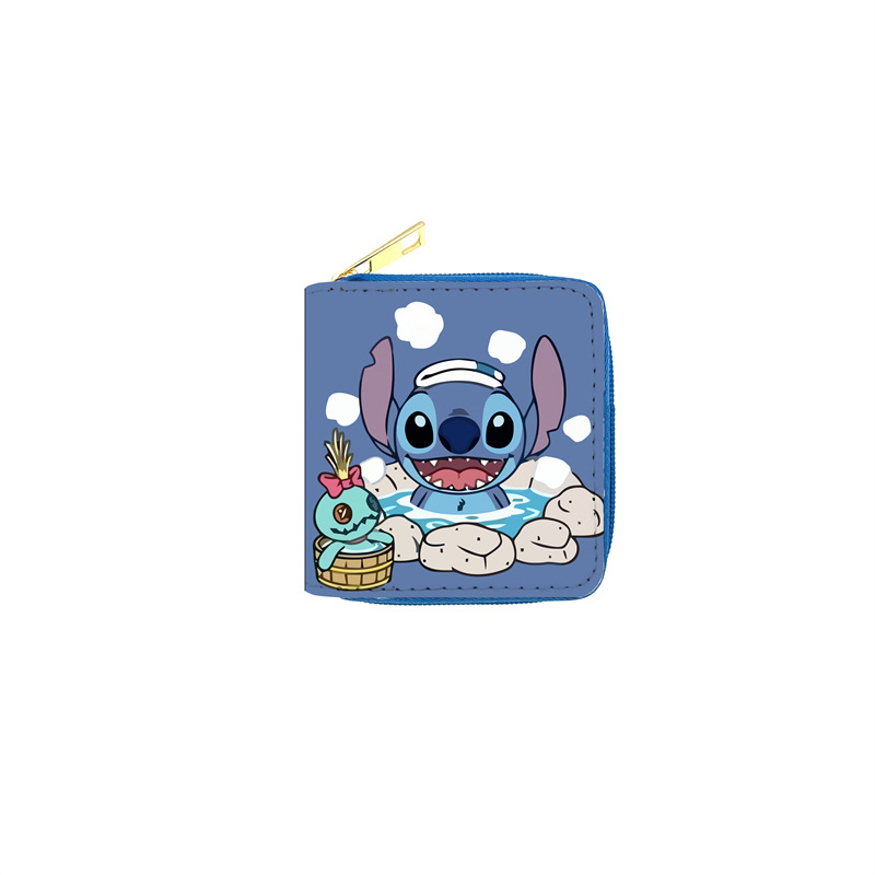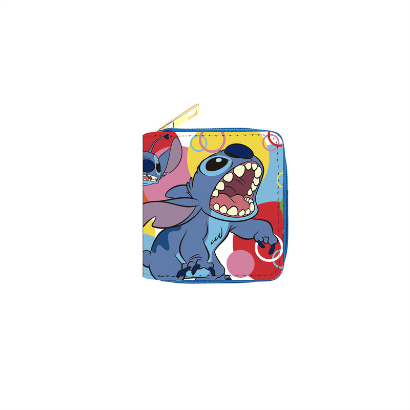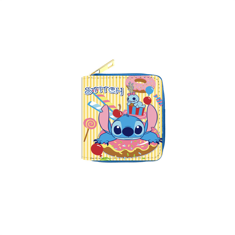 재고 만화 유럽과 미국 스타일 스티치 pu 지갑 학생 여자의 짧은 지퍼 가방 동전 지갑 ID 카드 가방