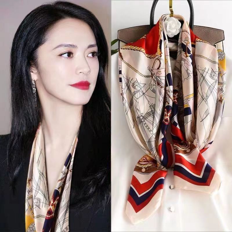 90 대형 스퀘어 스카프 여성의 새로운 2023 실크 모방 봄과 가을 세련된 패션 셔츠 작은 광장 스카프 어머니의 스카프