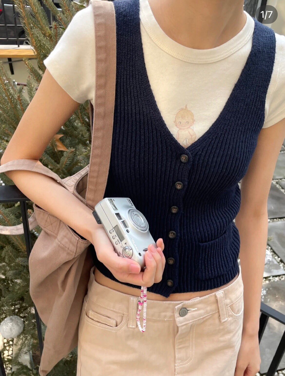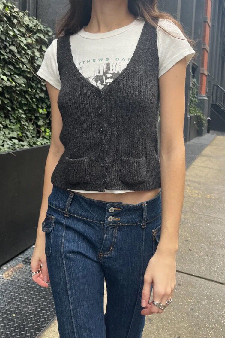 BM 스타일 더블 포켓 싱글 버튼 브이넥 민소매 니트 조끼 여성용 다용도 슬림핏 가디건 스웨터 코트 트렌디스토어 가기